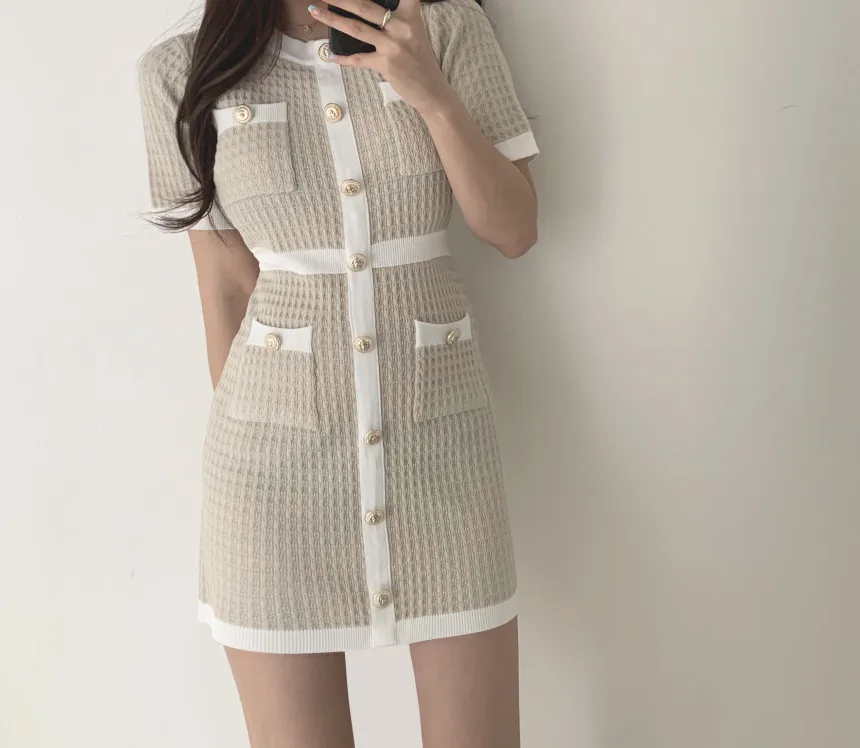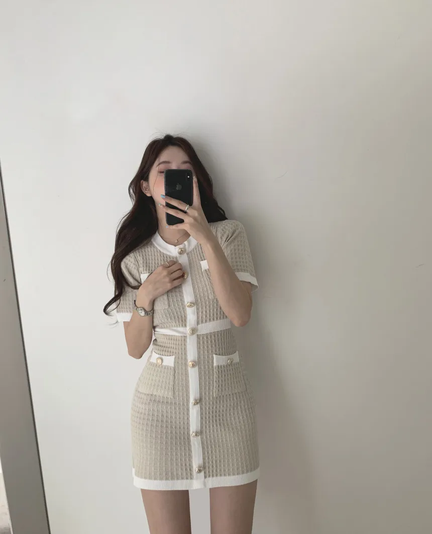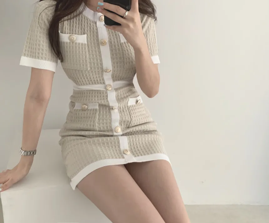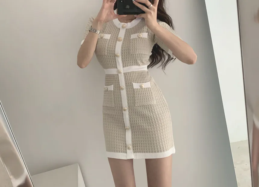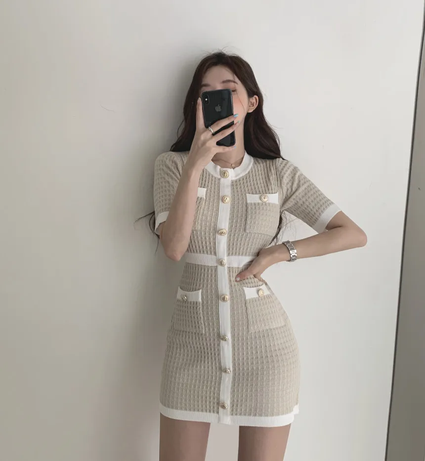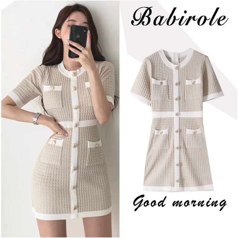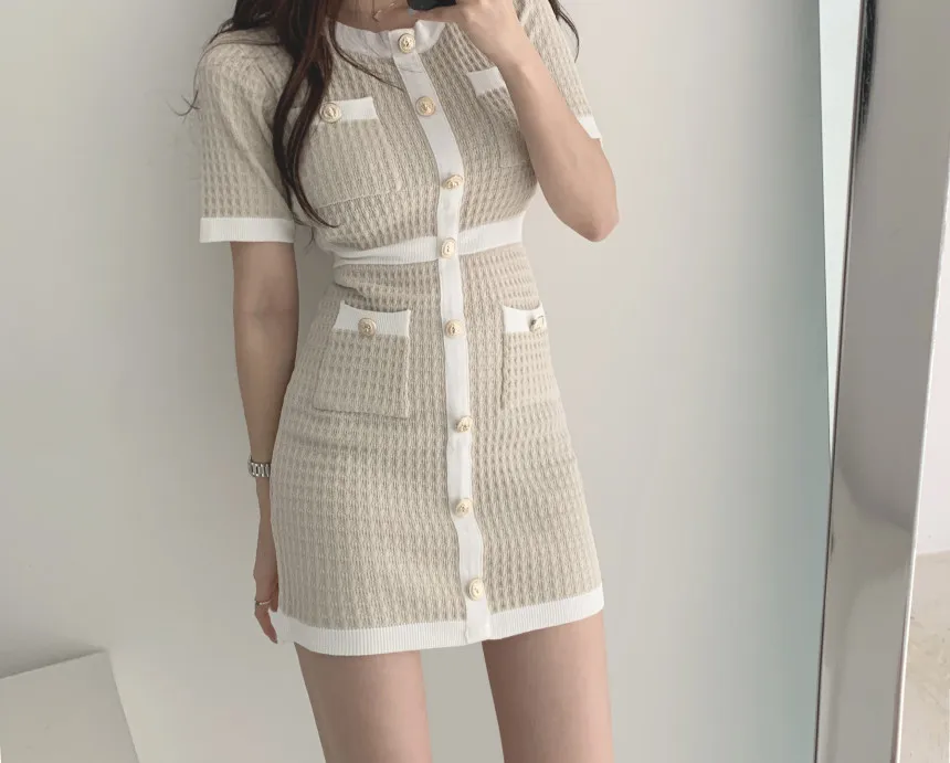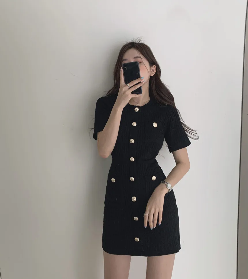Yipinpay Button Knitted Dress Sexy Mini O-Neck Vestido Curto Korean Summer Party Elegant Black Sweet Spring 2023 vetement femme