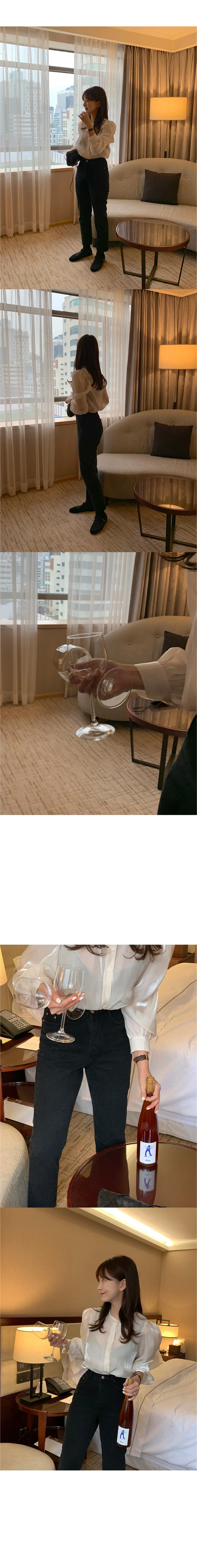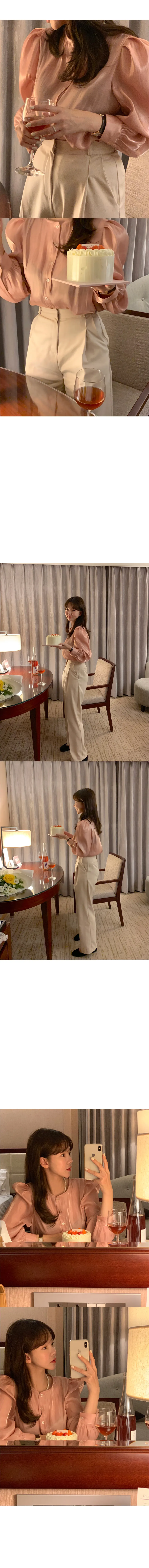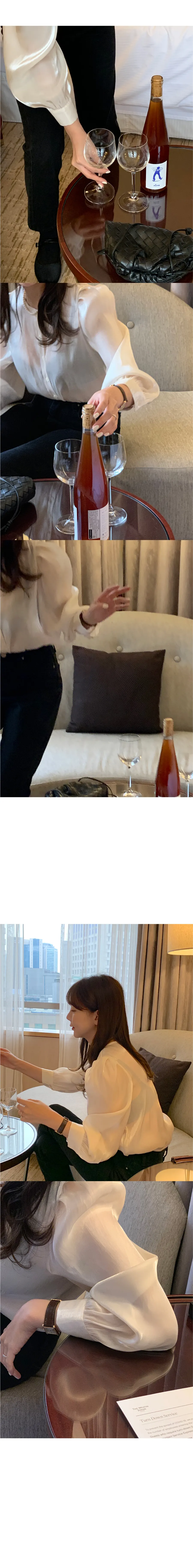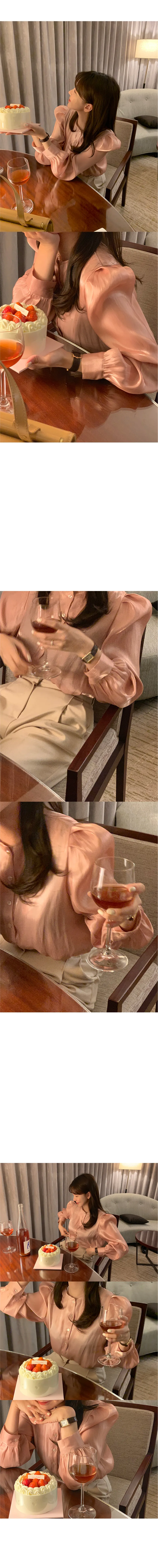 Yipinpay Button Puff Sleeve Shirt O-Neck Pink Pearly Silky 2023 Spring Shirt Summer Korean Women's Top