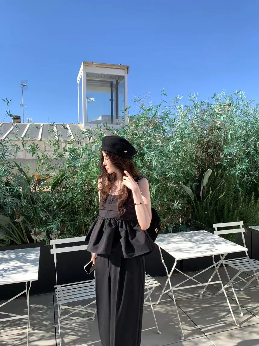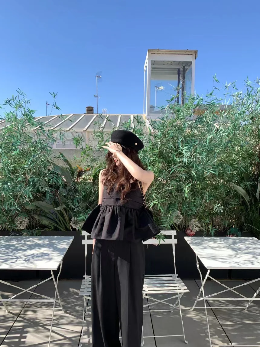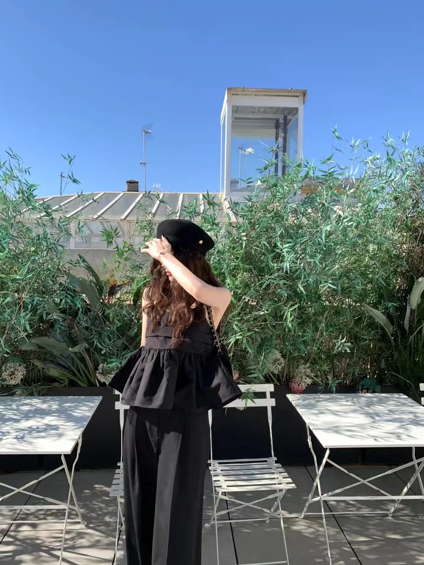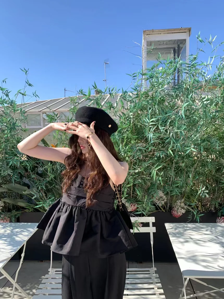 Yipinpay Camis Vintage Blouse Blusas Crop Tops Camisa Temperament Black Cake Doll Shirt Ruffled Women's 2023 Spring New Y2k French
