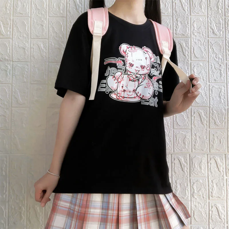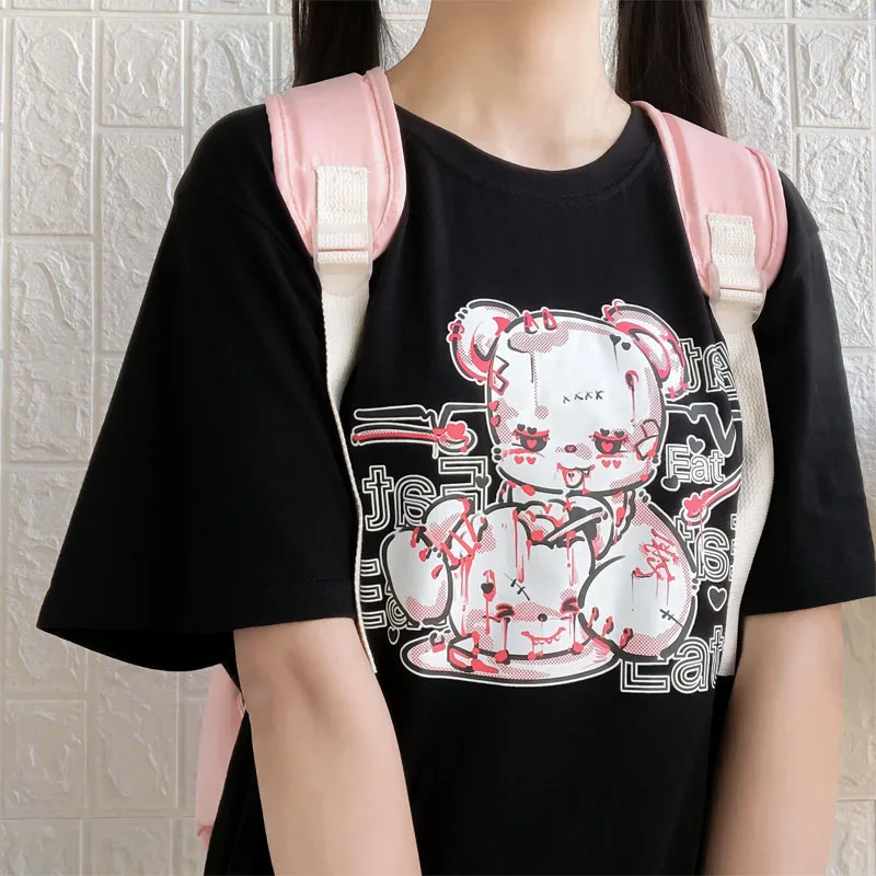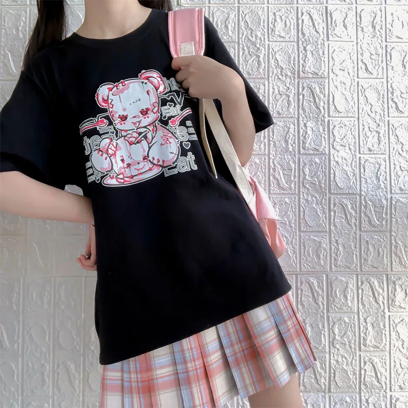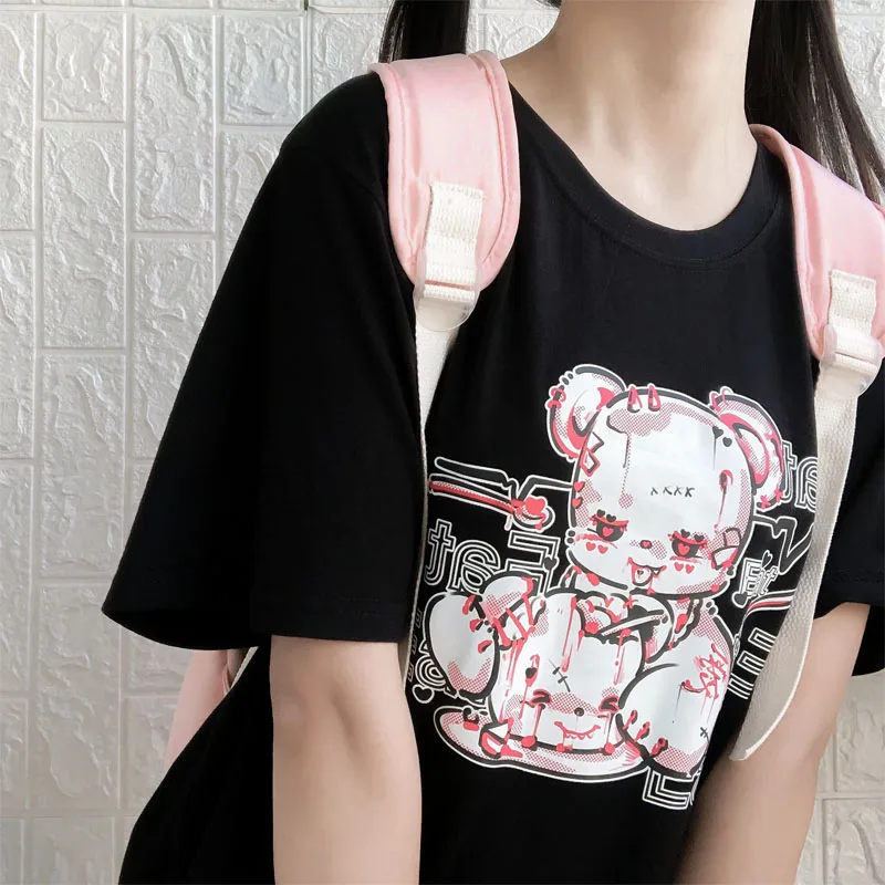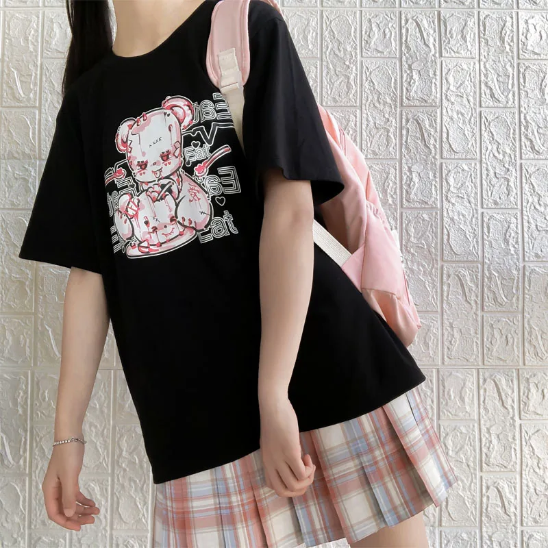 Yipinpay cartoon Bear top tees short sleeve Punk print Ulzzang clothes kawaii harajuku album Aesthetic vintage women Tshirt