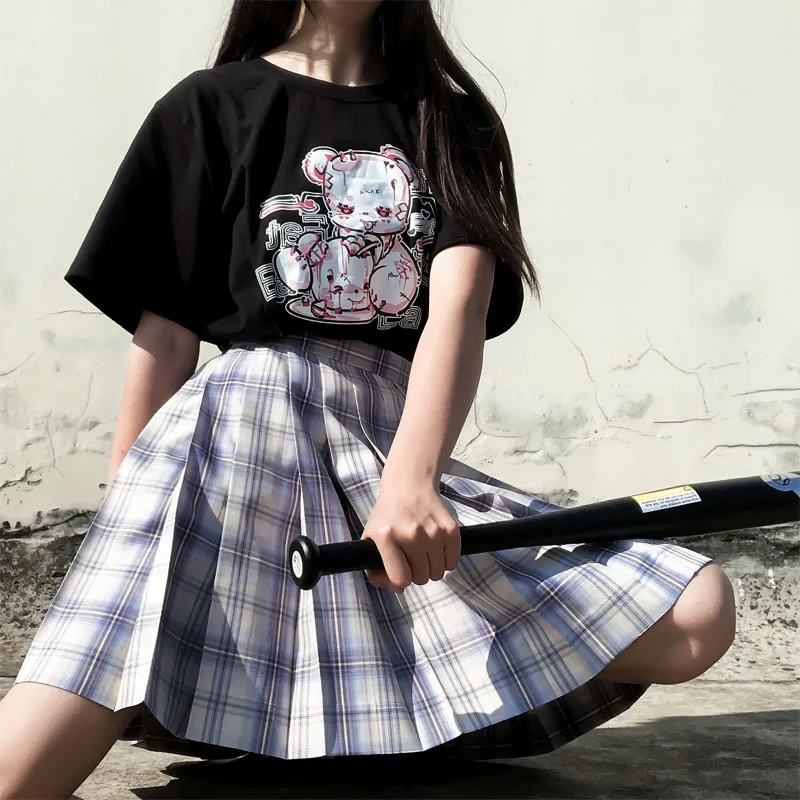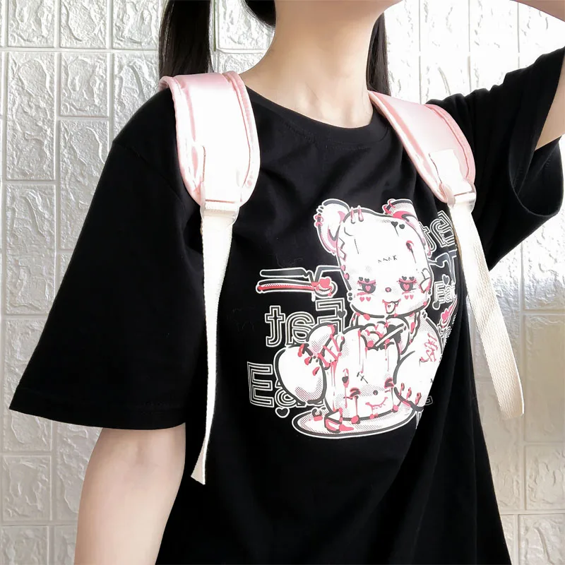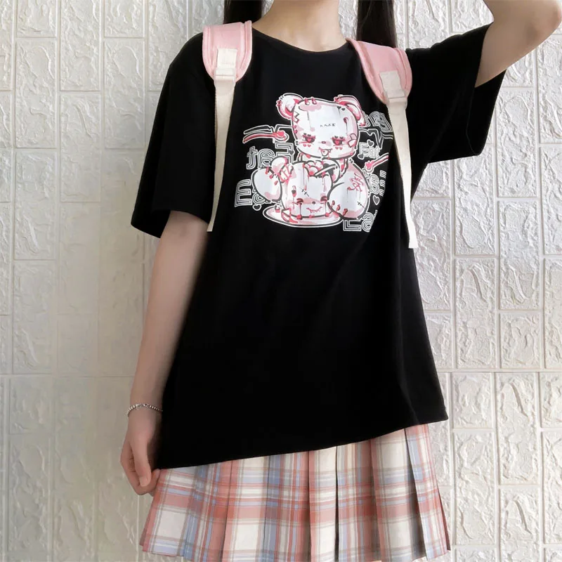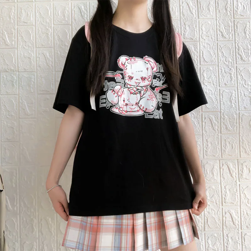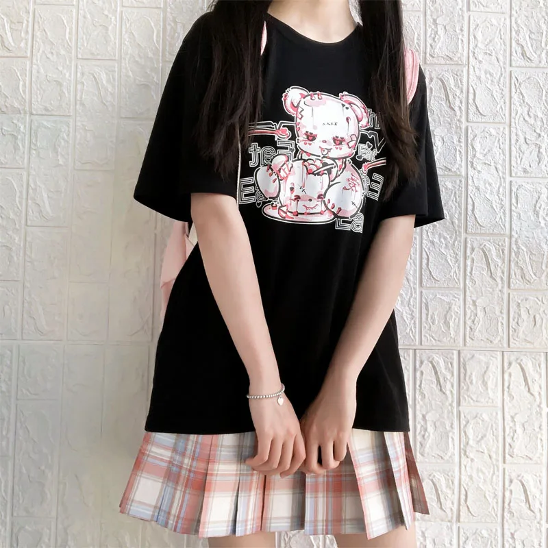 Yipinpay cartoon Bear top tees short sleeve Punk print Ulzzang clothes kawaii harajuku album Aesthetic vintage women Tshirt
