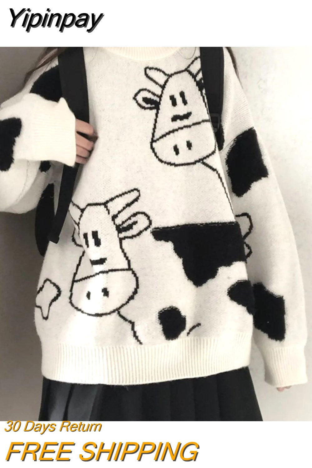 Yipinpay cartoon cow sweaters women's 2023 new autumn and winter Korean style loose long-sleeved pullovers sweater casual outer wear