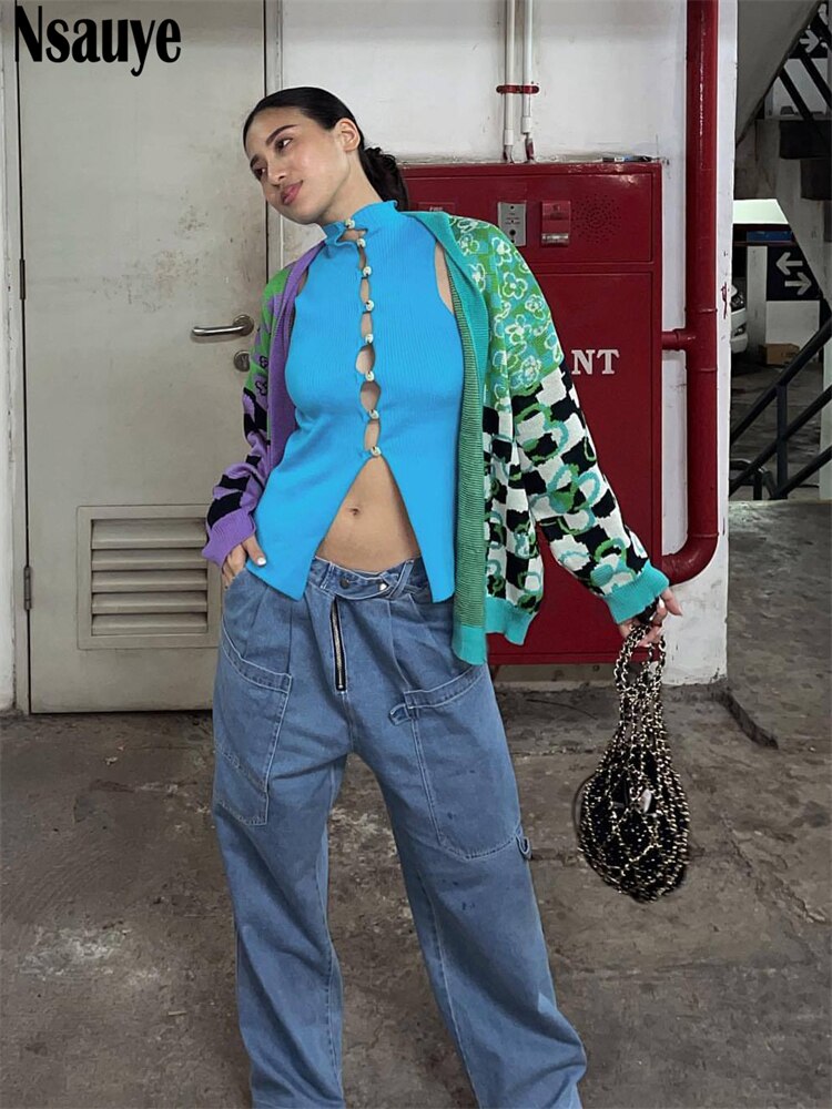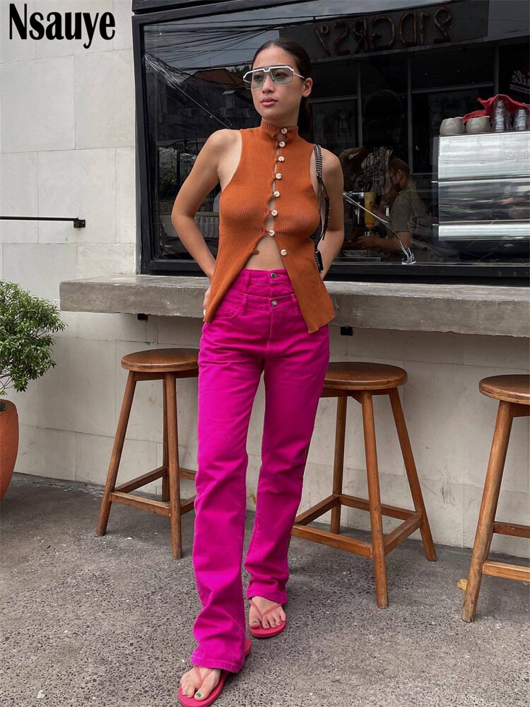 yipinpay Casual Button Women Knitted Sweater Y2K Vest Cardigans Crop Tops 2023 Skinny Sleeveless Sexy V Neck Tank Top Club T Shirt
