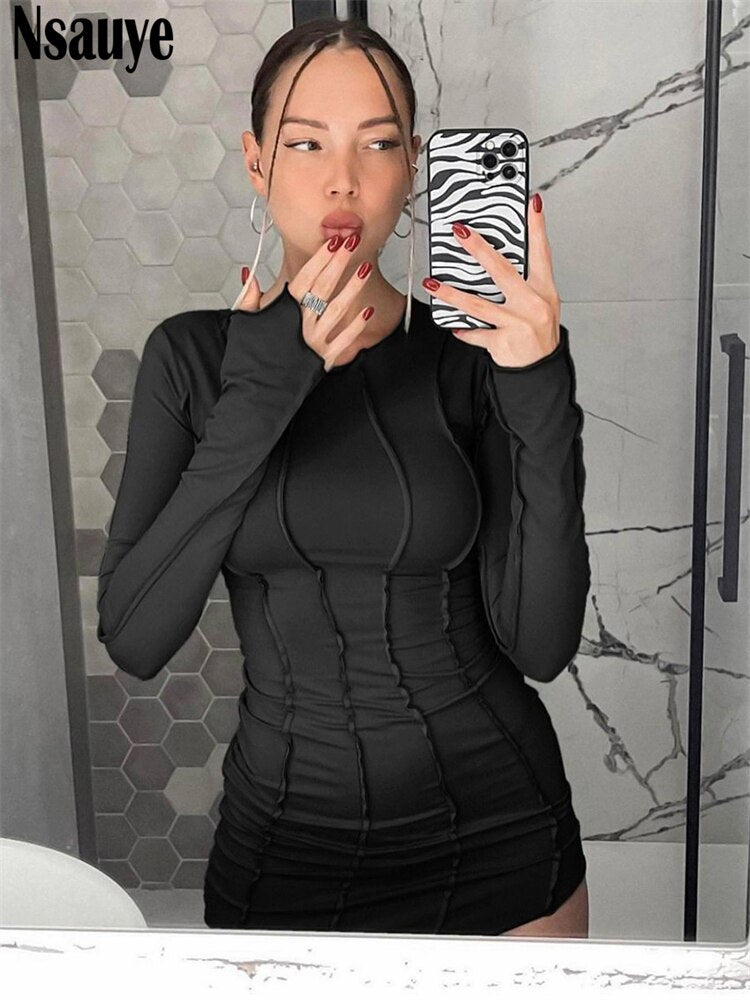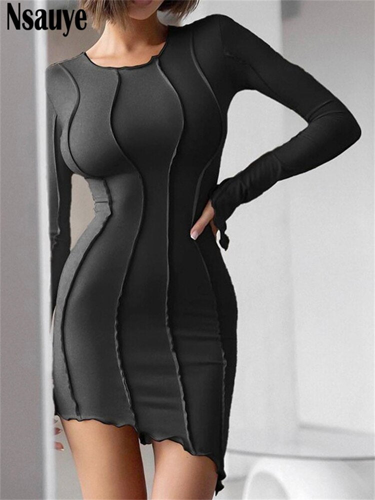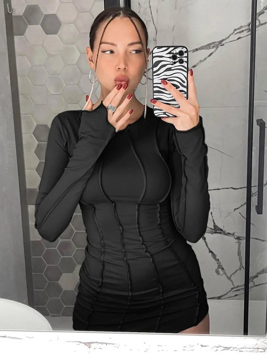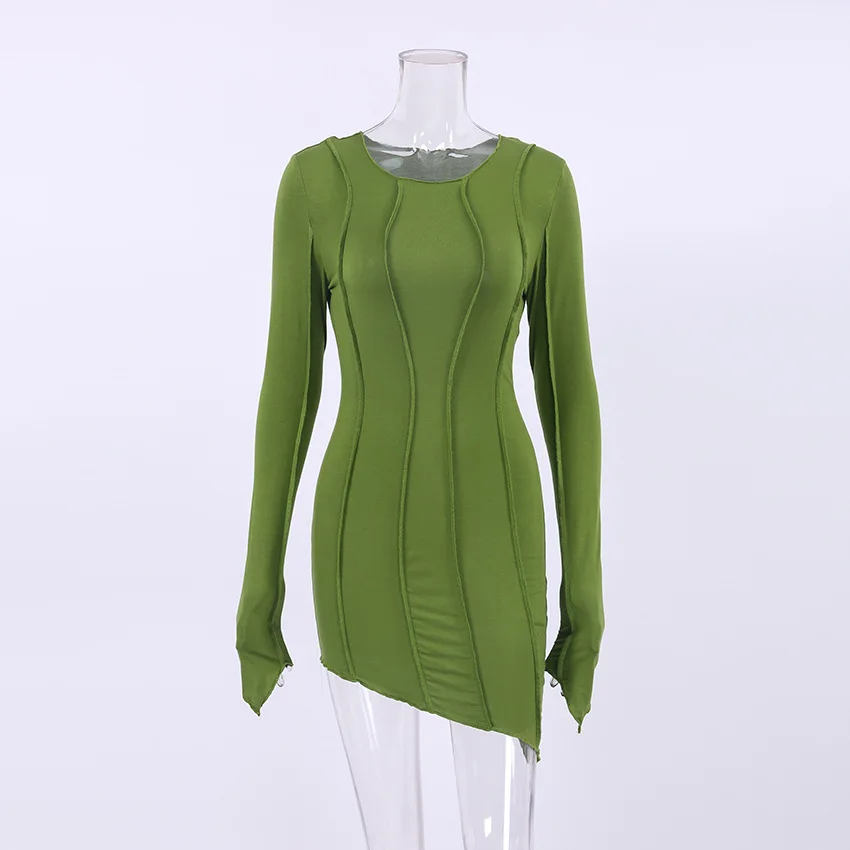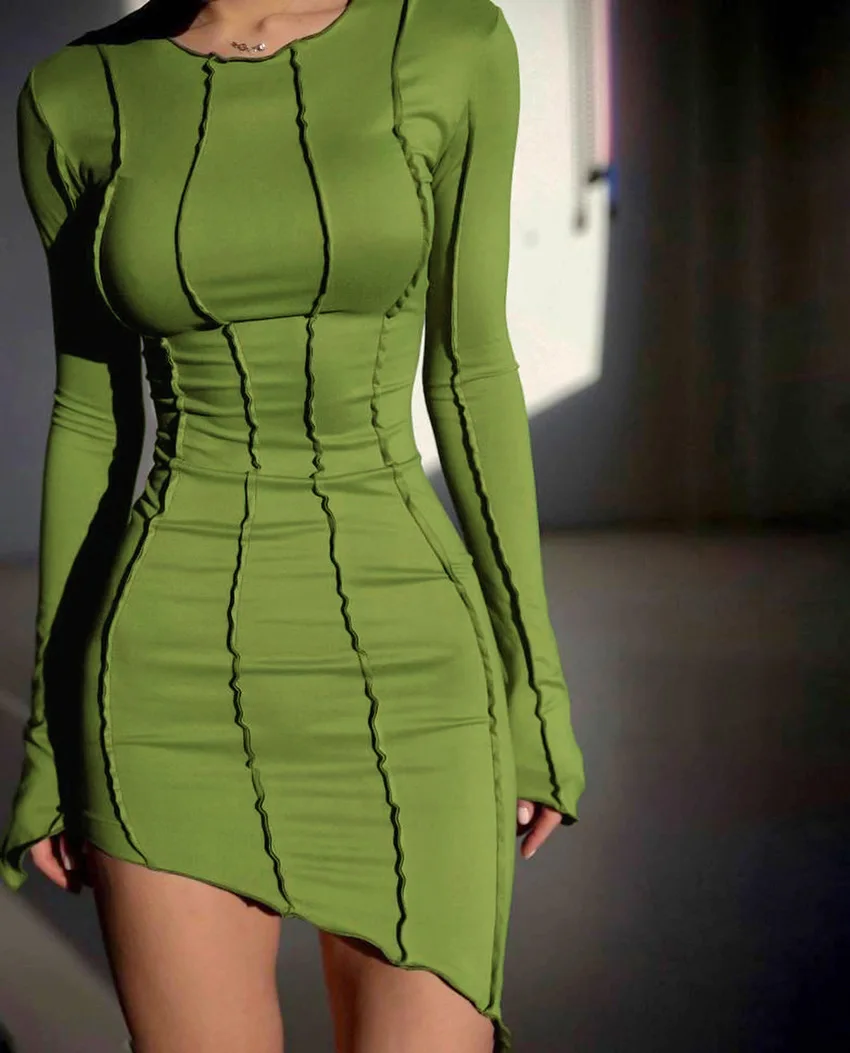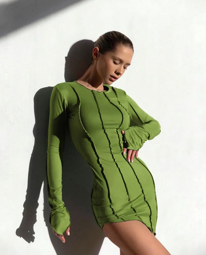 yipinpay Casual Long Sleeve Sexy Club Striped Basic BodyconY2K Women Dresses Winter 2023 Evening Party Fashion Dress Green Ladies