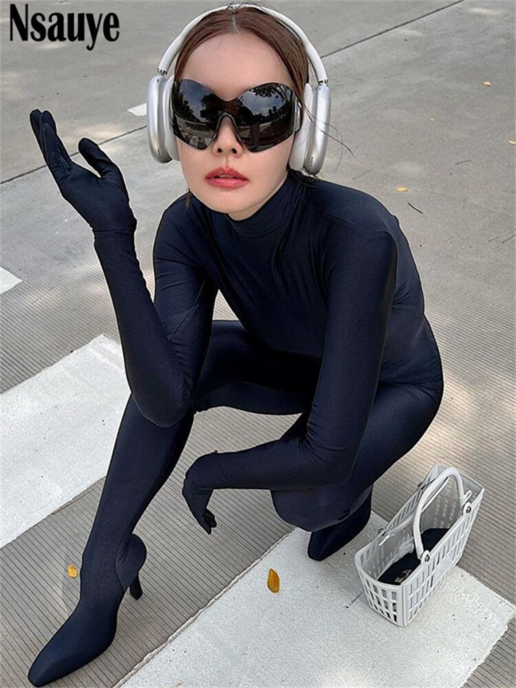 yipinpay Casual Sport Skinny Jumpsuits Women Bodycon Black Long Sleeve Club Overalls One Pieces Sexy Body Tops Outfis Autumn 2023