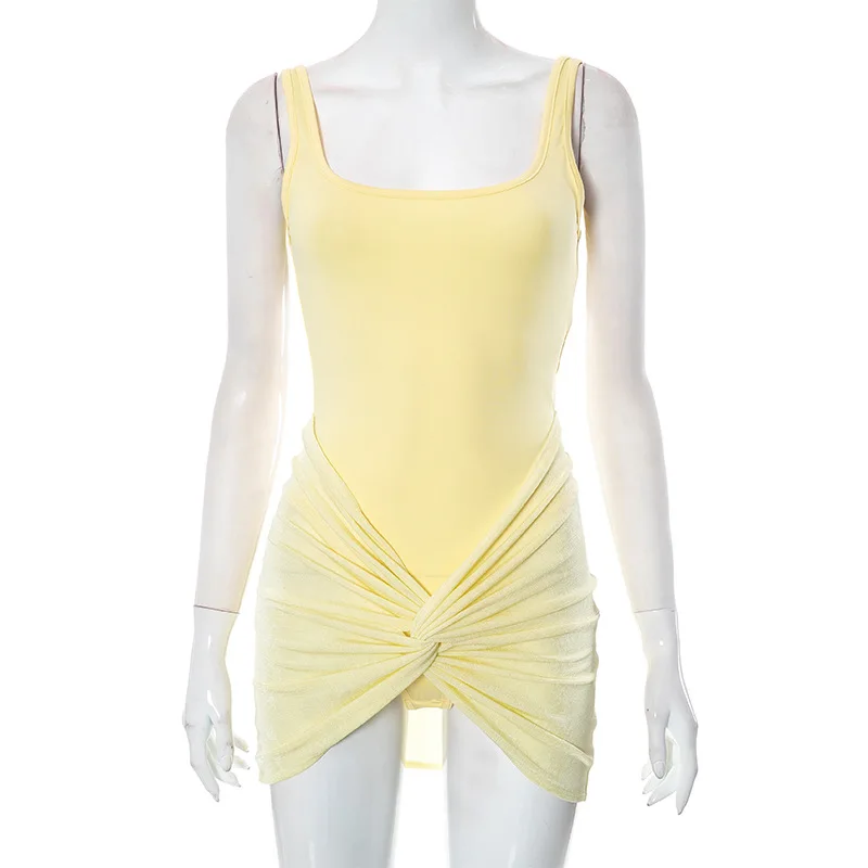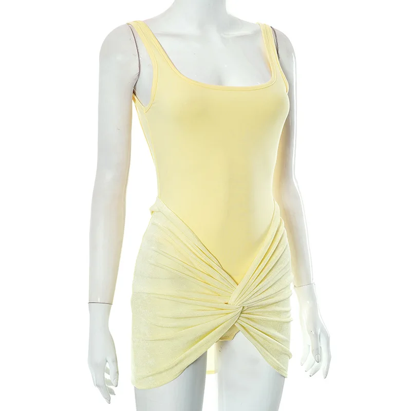 yipinpay Casual Summer Beach Women Fashion Sexy Bodysuit Tops And Mini Low Waisted Bodycon Skirt Party Two Piece Outfits Set 2023