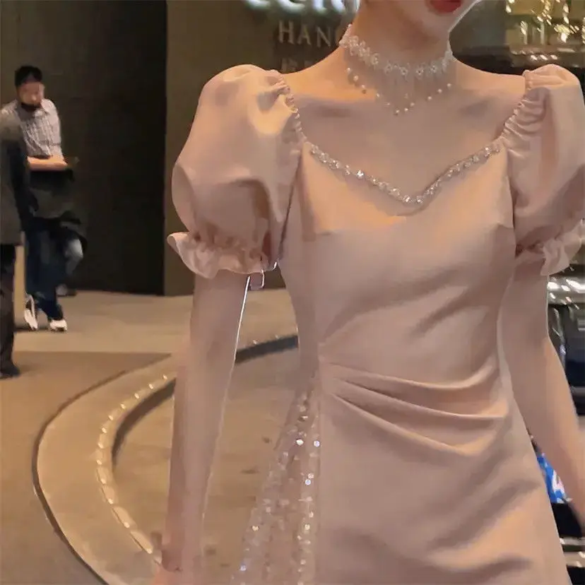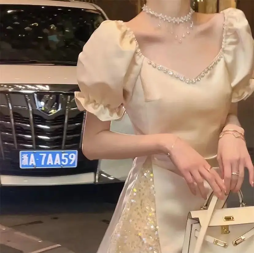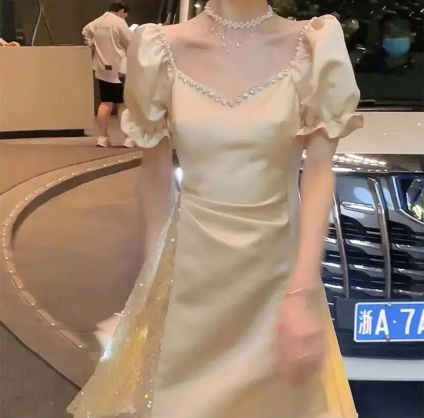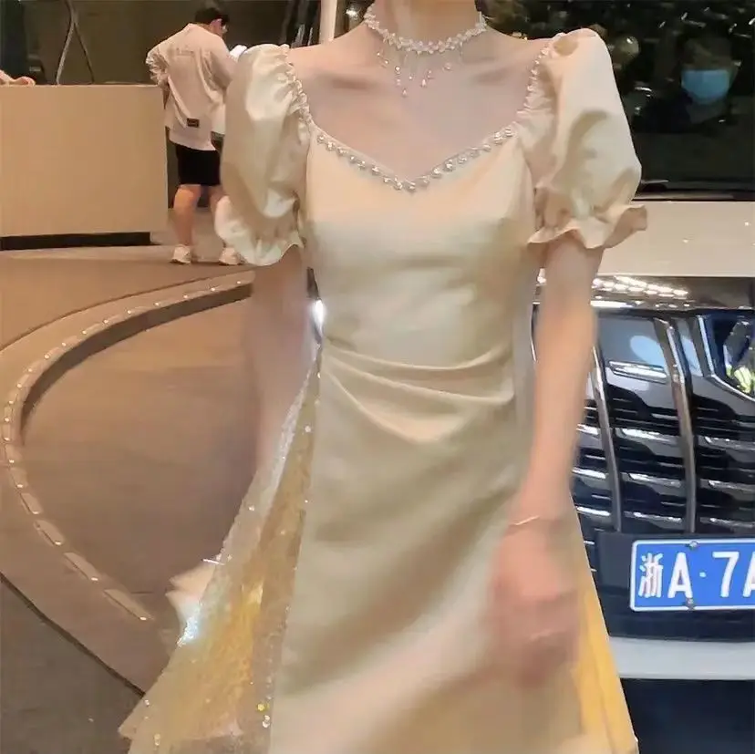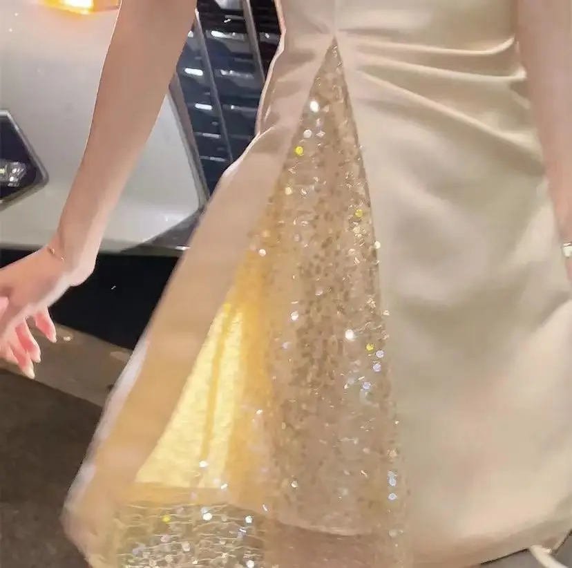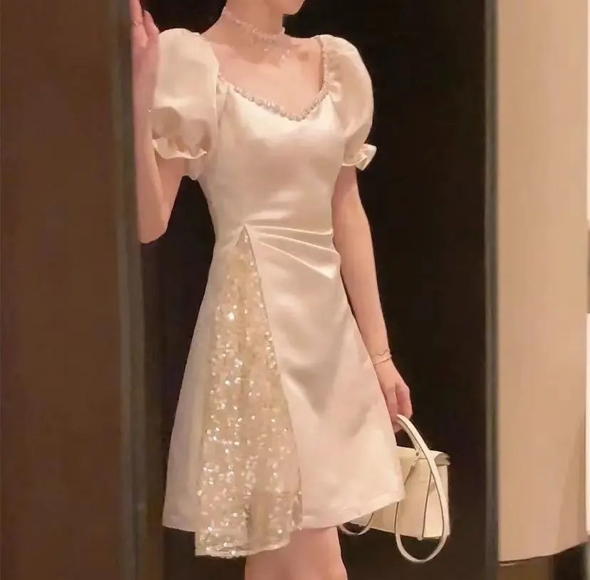 Yipinpay Chic Mini Sequin Dress Women Vintage V-neck Luxury Evening Dress Female Elegant Lace Patchwork Prom Party Dress 2023