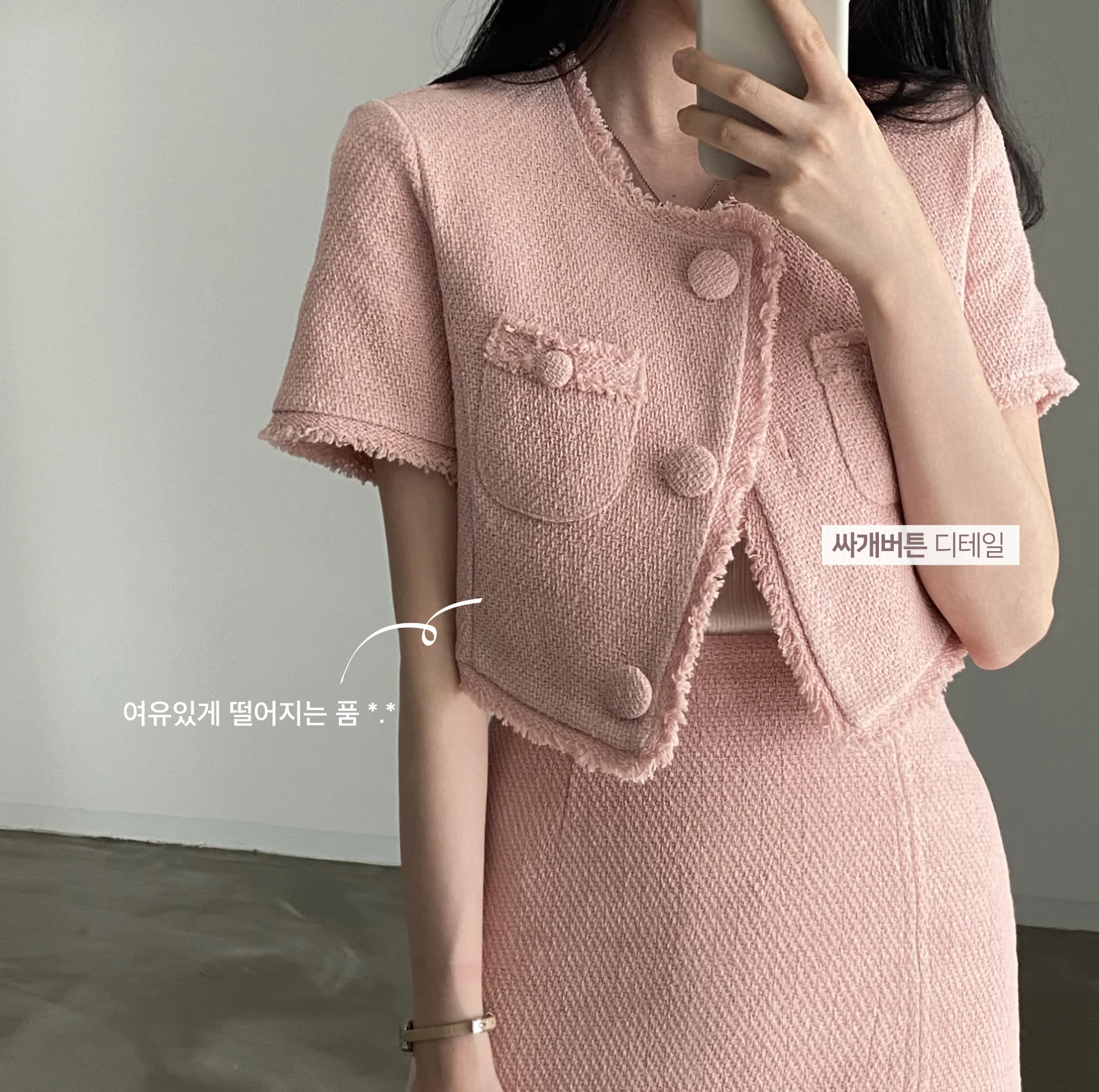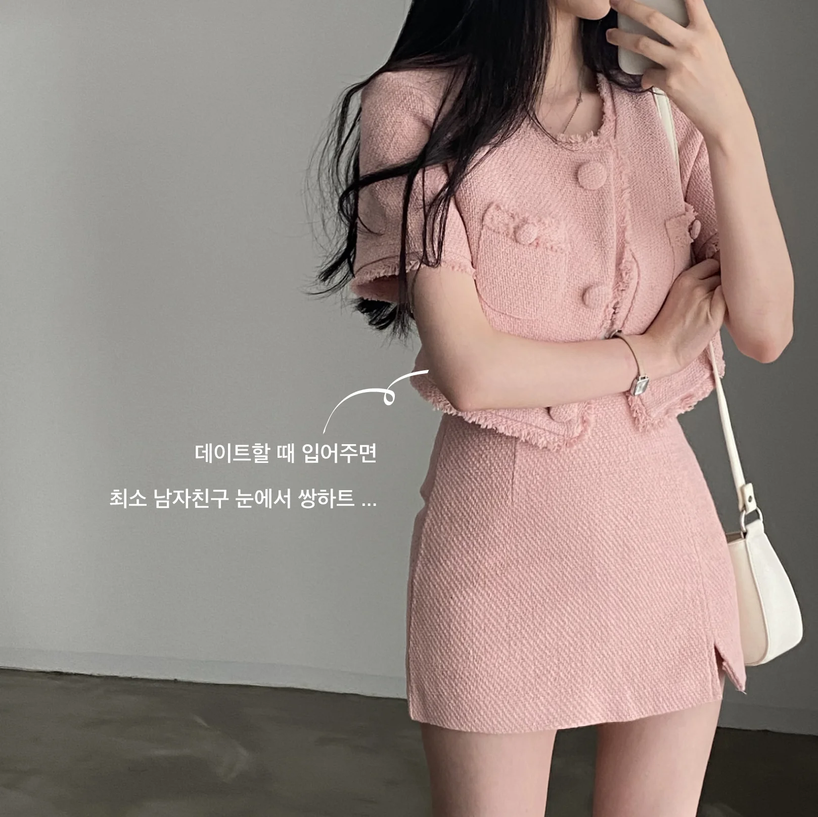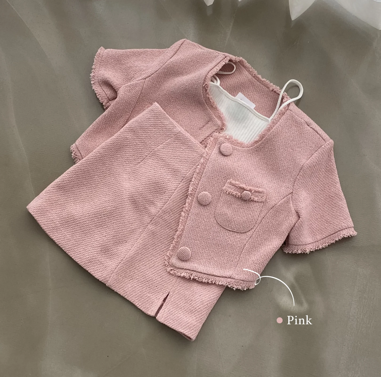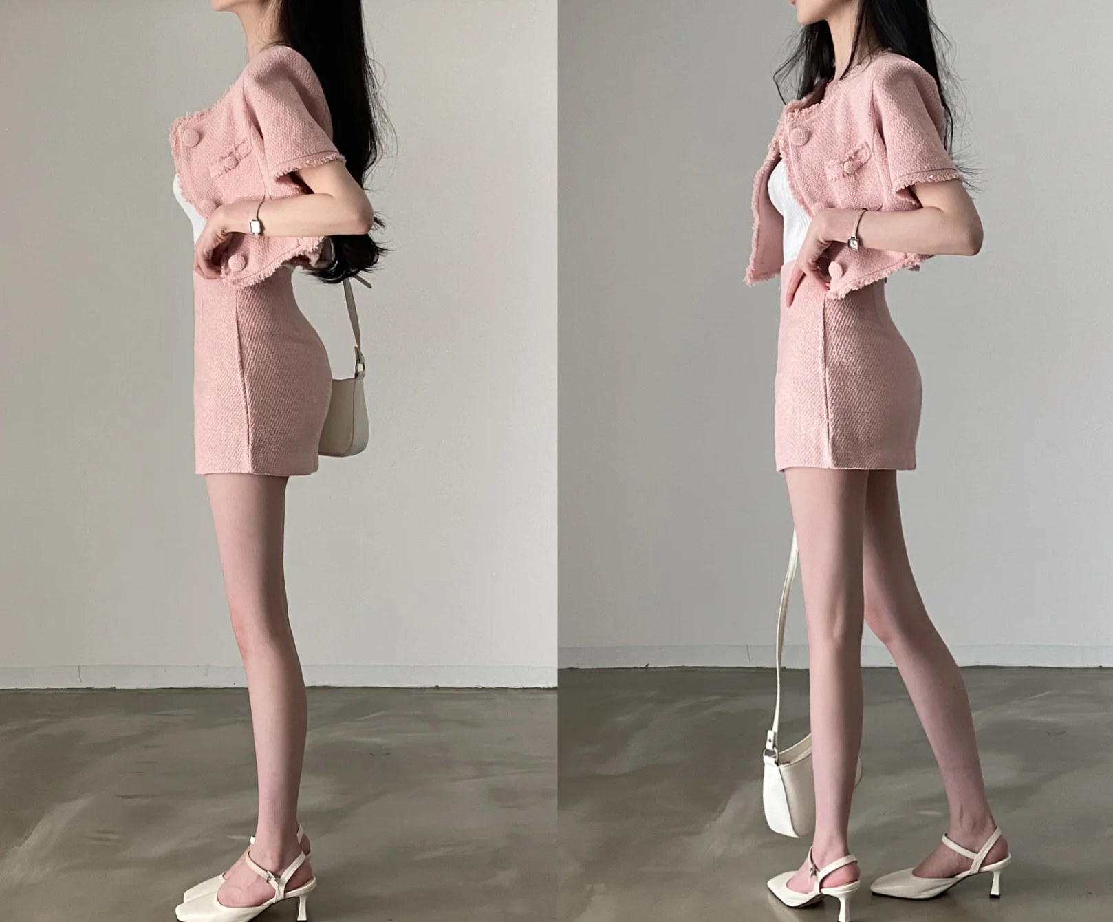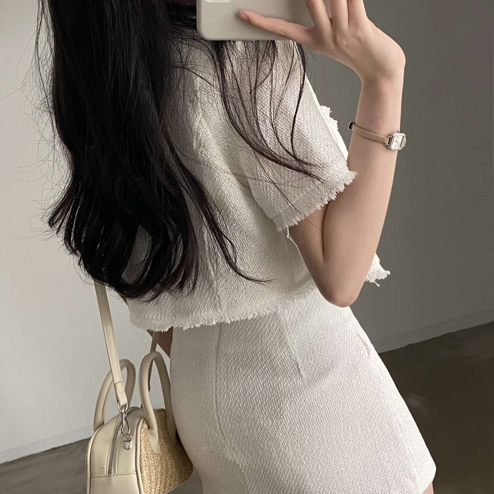 Yipinpay Chic Summer Elegant Round Short Sleeve Pink Tweed Jacket Short Tassel Shirt Mini Skirt Sets 2023 Fashion