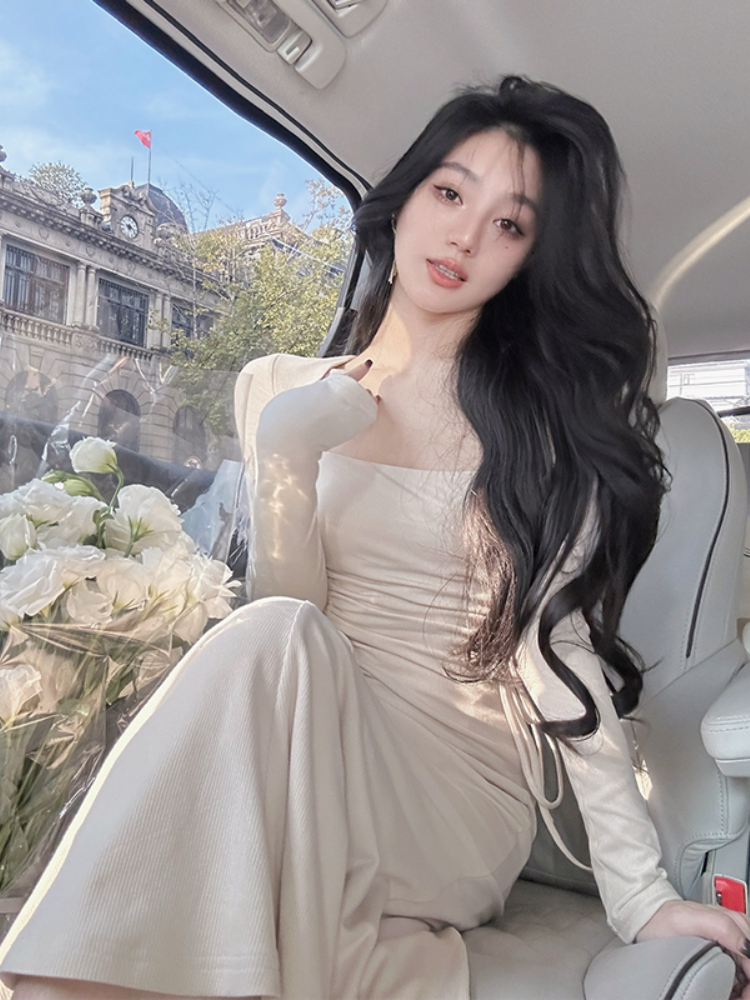 Yipinpay Colo Elegant Midi Dress Slim Casual 2023 Autumn Korea Fashion Evening Party Dress Woman Long Sleeve Sexy Bodycon Dress
