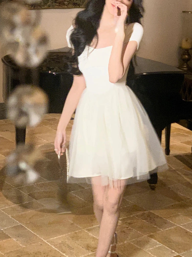 Yipinpay Color French Elegant Dress Office Lady 2024 Summer Short Sleeve Fairy Midi Dress Casual Fashion Evening Party Dress Woman