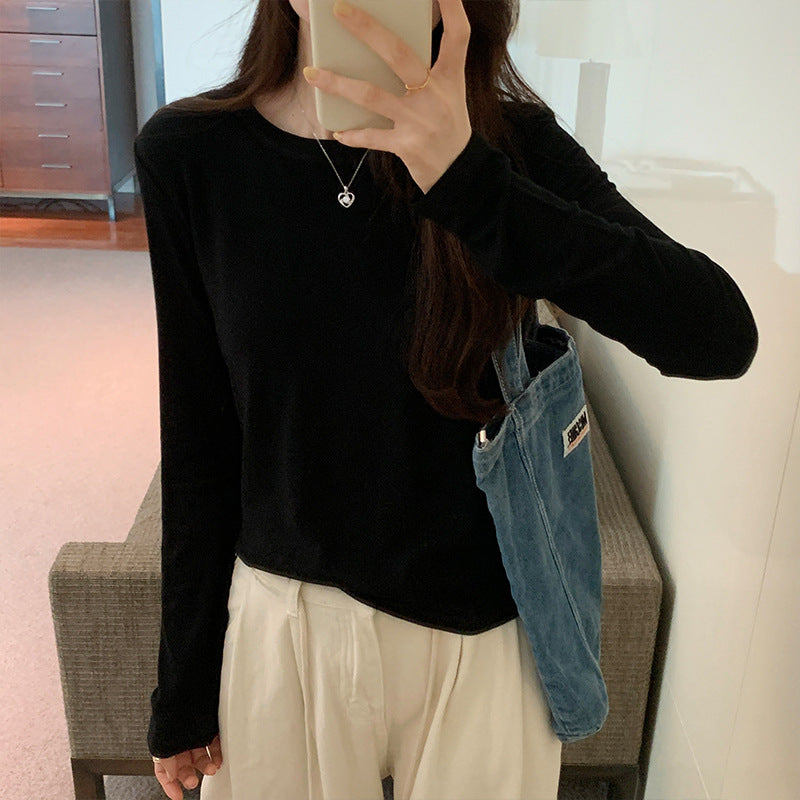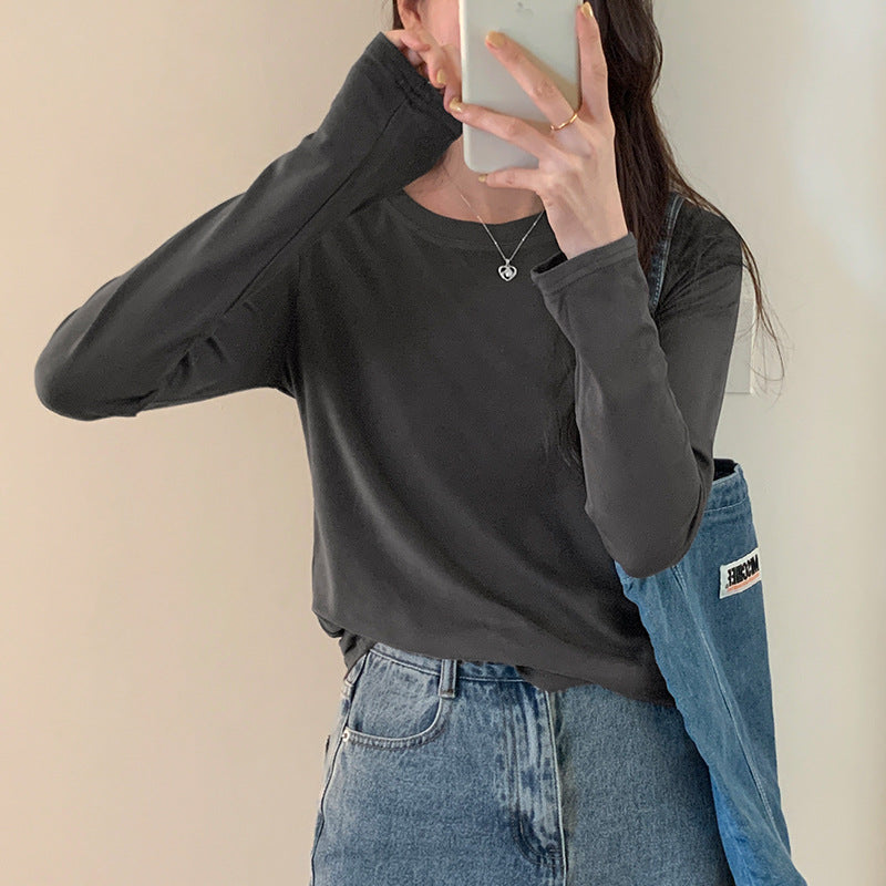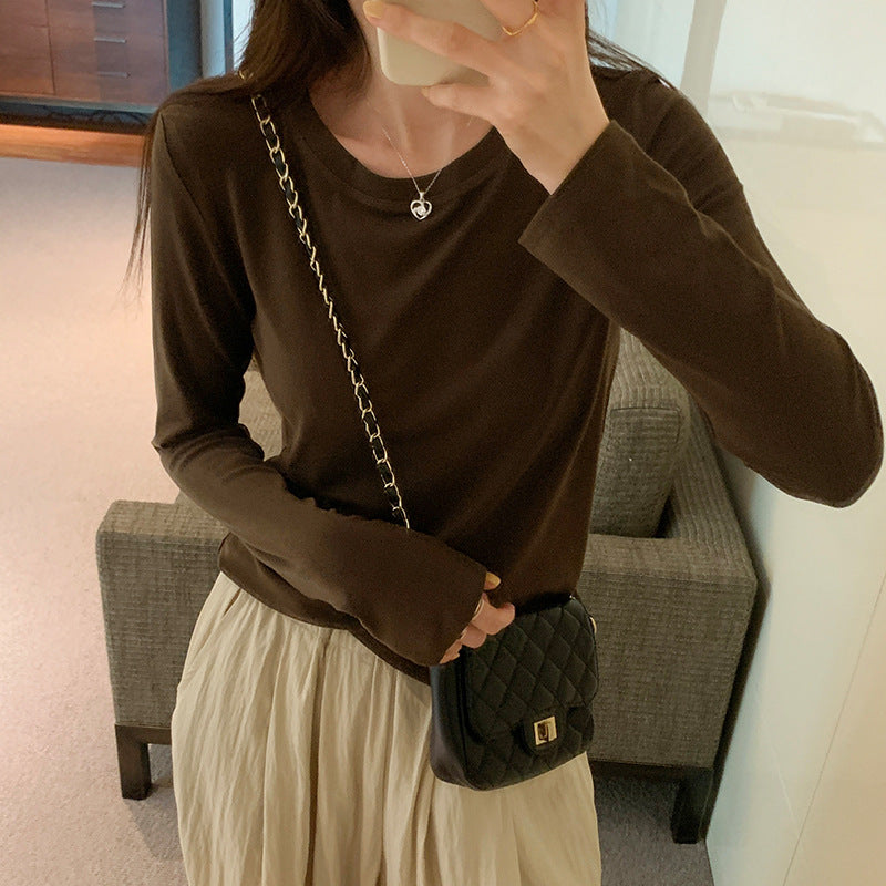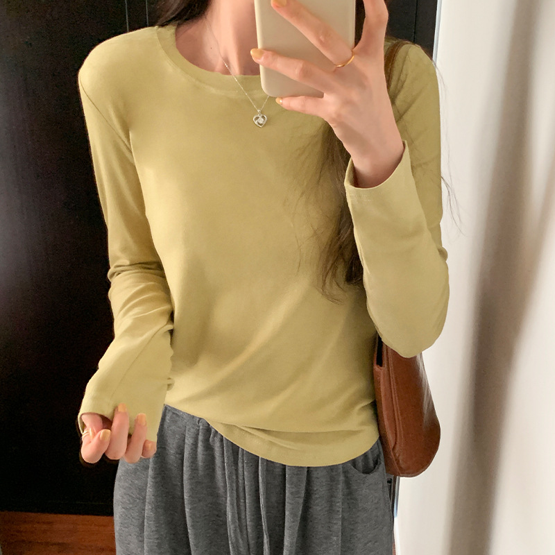 Yipinpay Color Round Neck Slim Long-Sleeved T-Shirt Women's New Style Casual Shirt With Straight Shoulders In Autumn And Winter