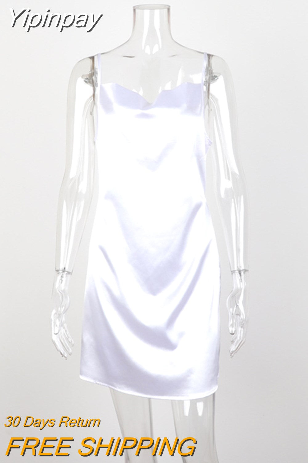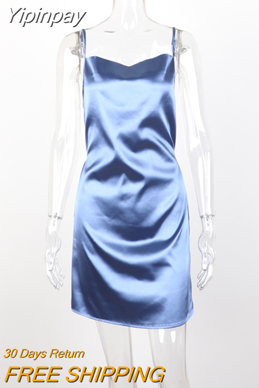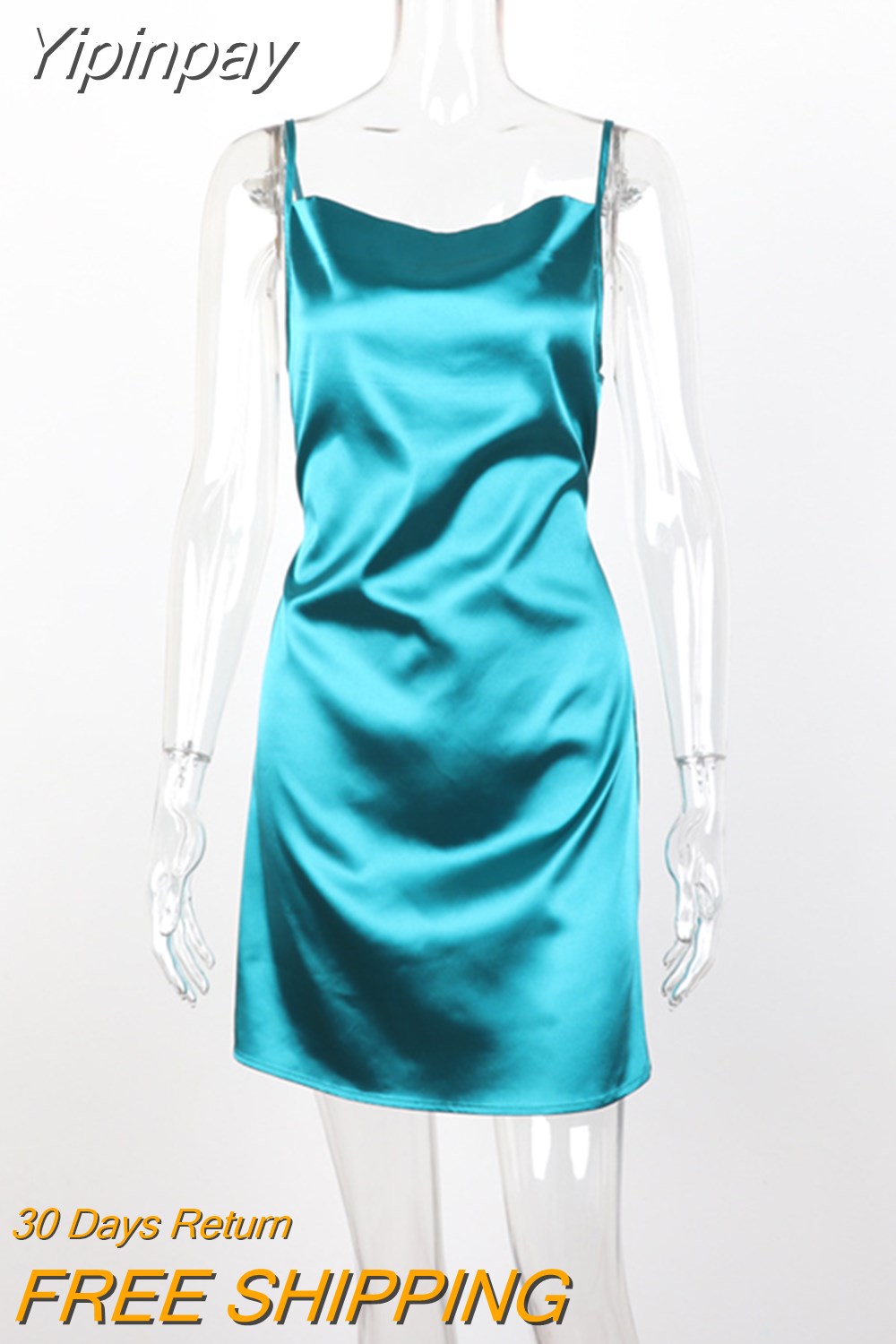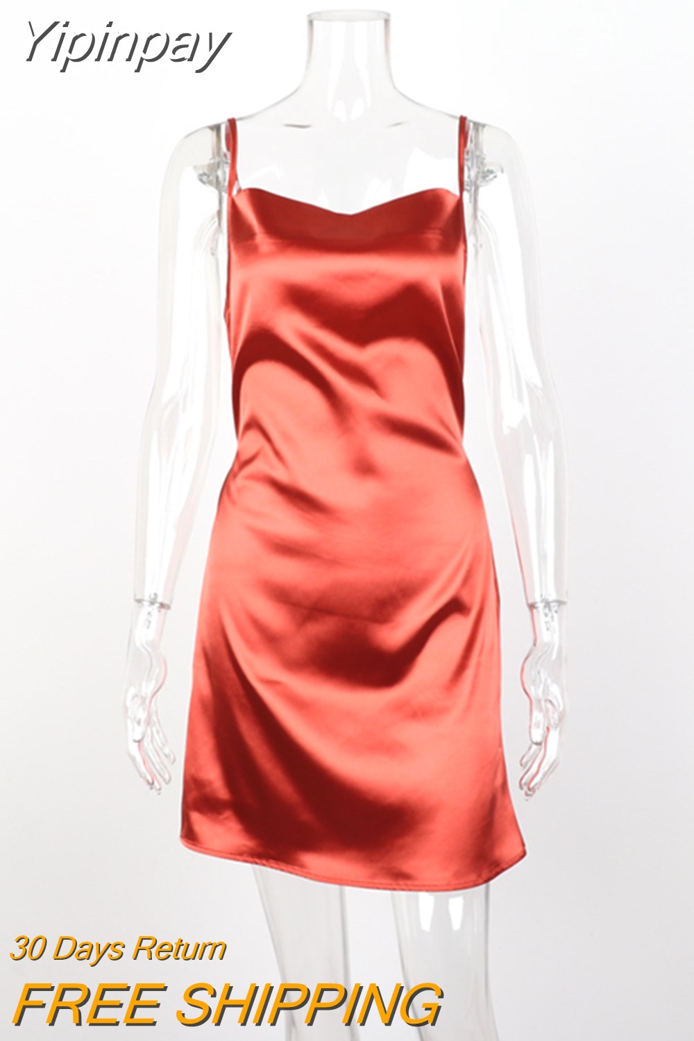 Yipinpay Color Spaghetti Strap Satin Dress Sexy Women Sleeveless Slip Dress for Summer Club Party Wear Lady Mini Dress