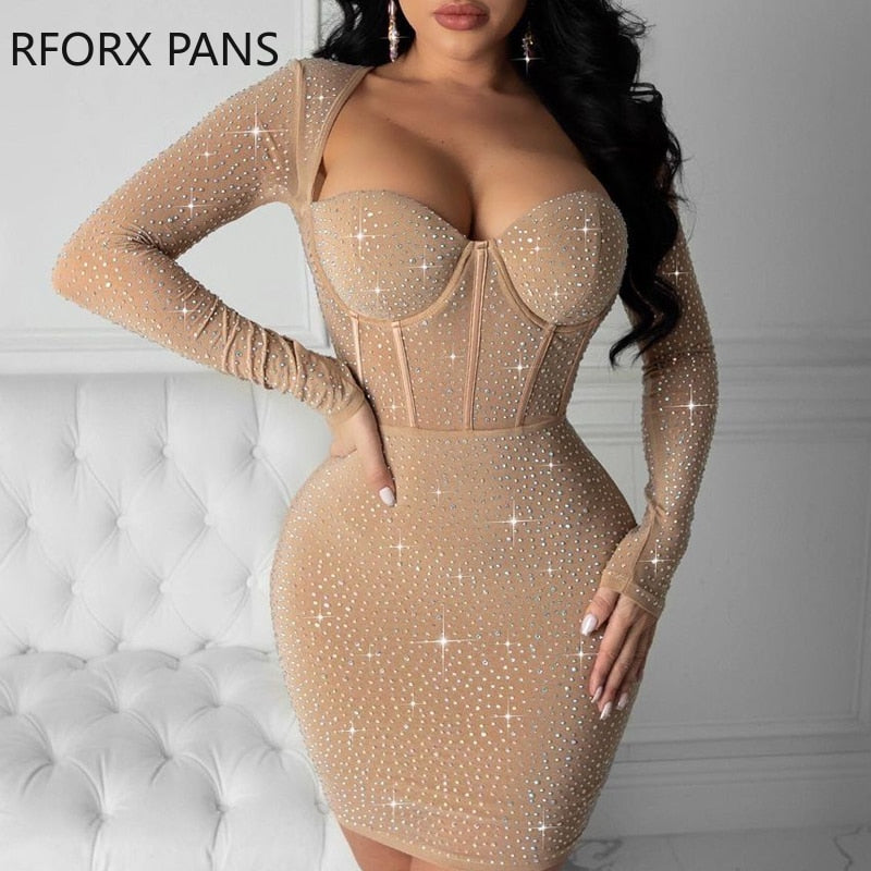 Yipinpay Corset Long Sleeve Bodycon Dress Sexy Dress For Women