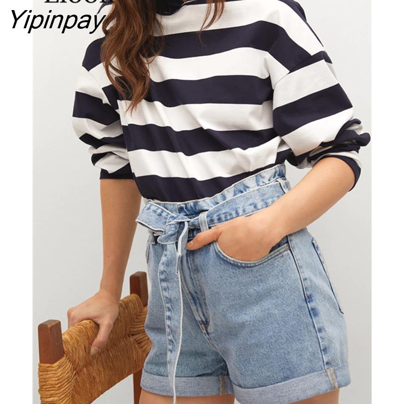 Yipinpay Cotton Curly Denim Shorts Women With Belts Pockets 2023 Summer Streetwear Blue Drawstring High Waisted Sexy Jean Shorts