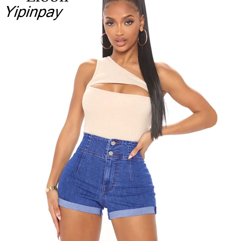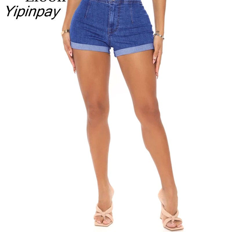 Yipinpay Cotton Stretch Button Up Cuffed Denim Shorts Women High Waist Bottom Summer With Pockets Streetwear Sexy Skinny Jean Shorts