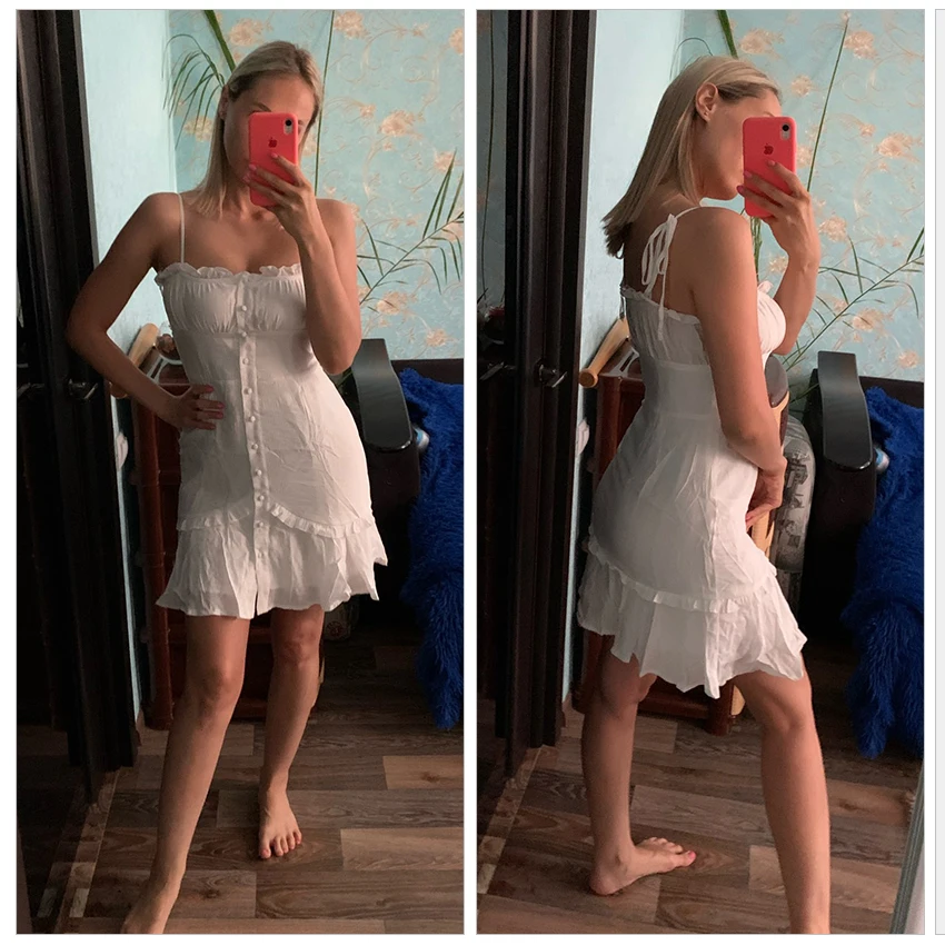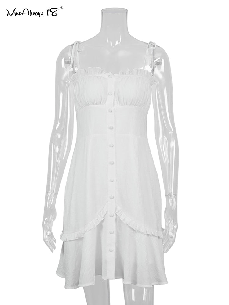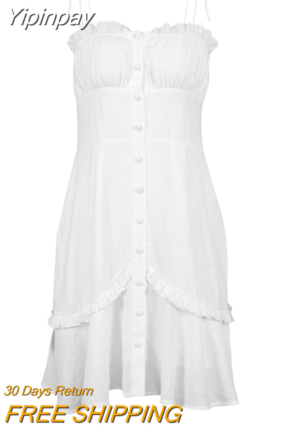 Yipinpay Cotton White Spaghetti Strap Sexy Bodycon Dress Women Breasted Mini Sundress Summer Lace-Up Ladies Corset Dress 2023