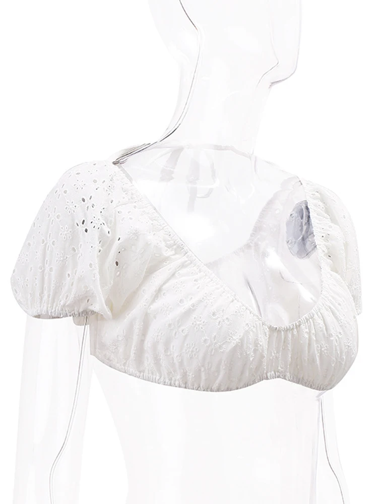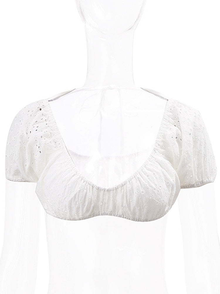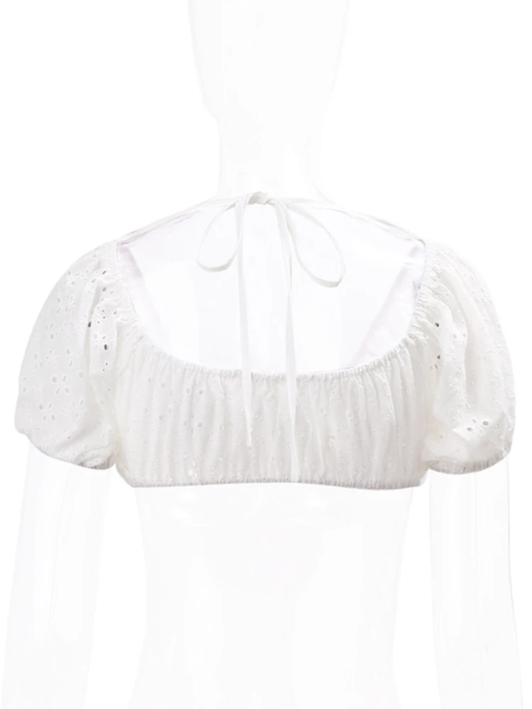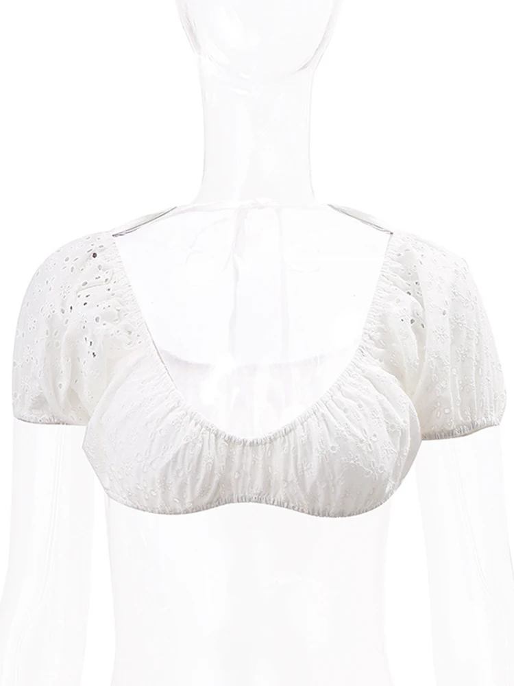 yipinpay Crop Top Puff Sleeve T-Shirts Women Backless Top Summer Basic Skinny Solid T Shirt Female Chic Streetwear Short Sleeve Tee