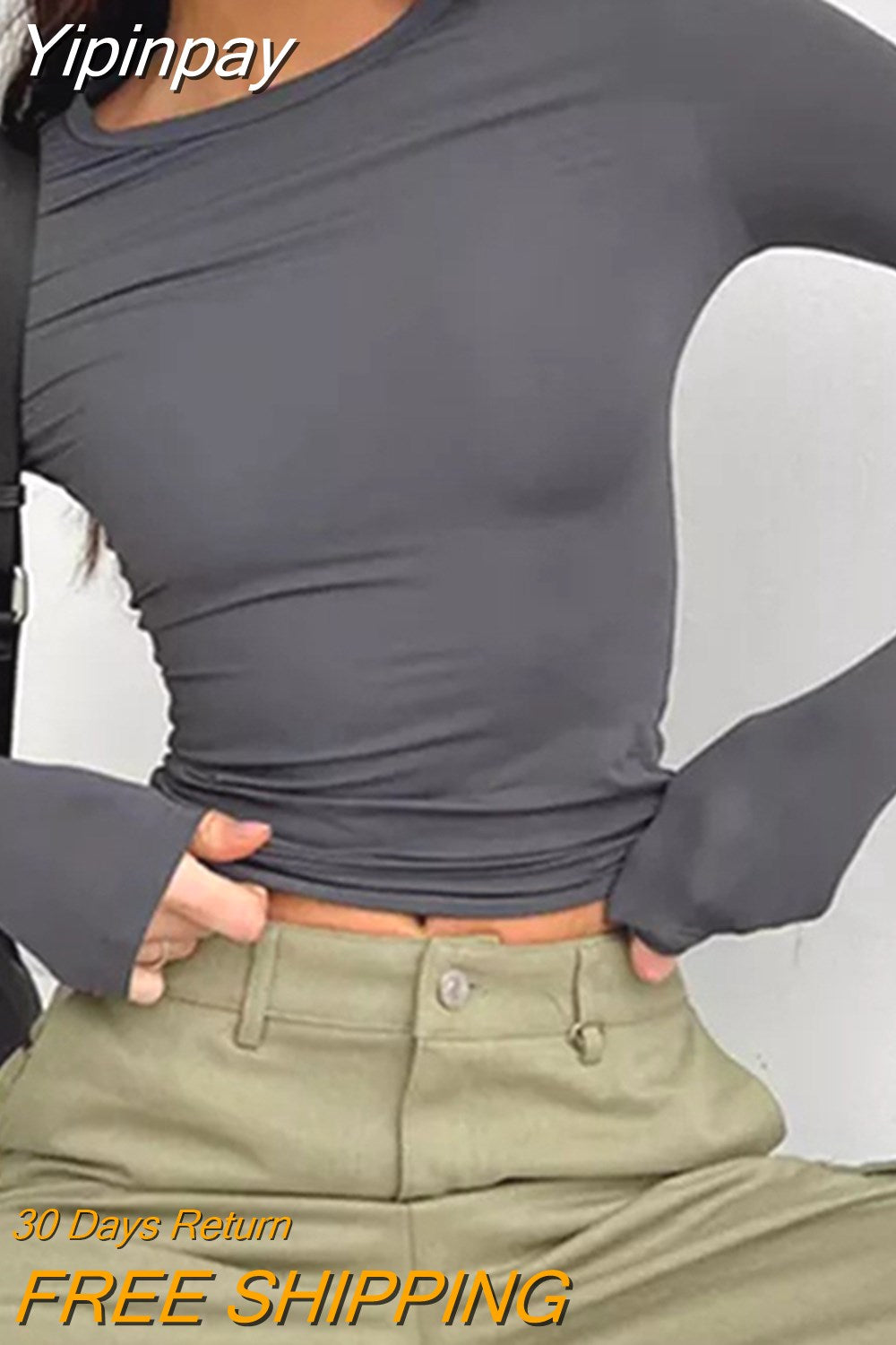 Yipinpay Crop Top Women Pullover Long Sleeve Tees Y2K Clothes Harajuku Streetwear Slim Fit T Shirt Woman Spring Basic T-Shirts