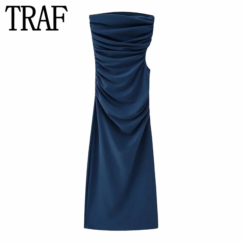 Yipinpay Cut Out Corset Woman Off Shoulder Long Dresses For Women 2023 Ruched Blue Bodycon Dress Women Sexy Evening Party Dresses