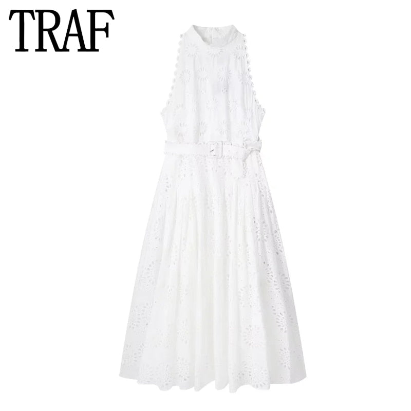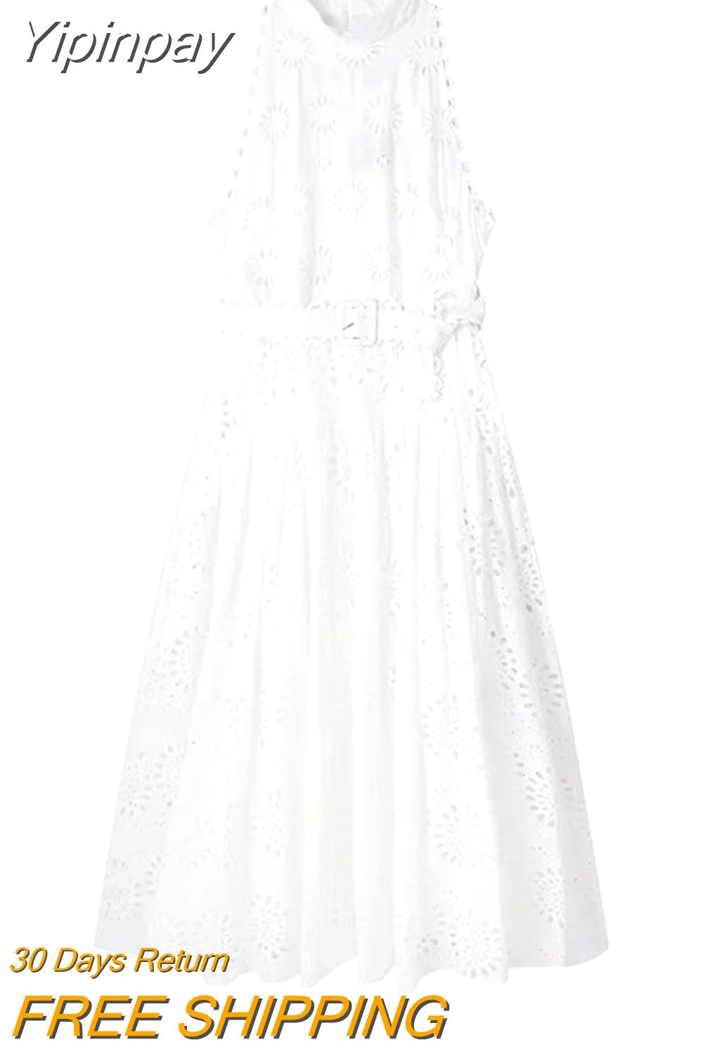 Yipinpay Cut Out White Dress Women Embroidery Long Dress Women Fairycore Summer Dresses Woman Elegant And Pretty Women's Dresses