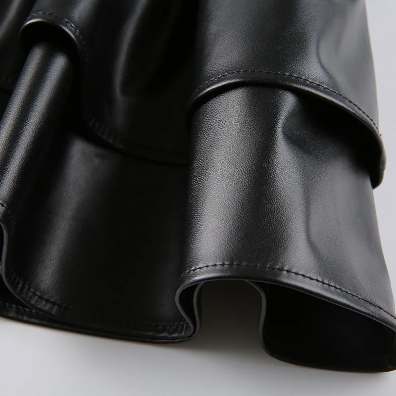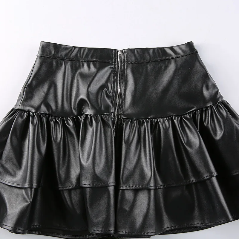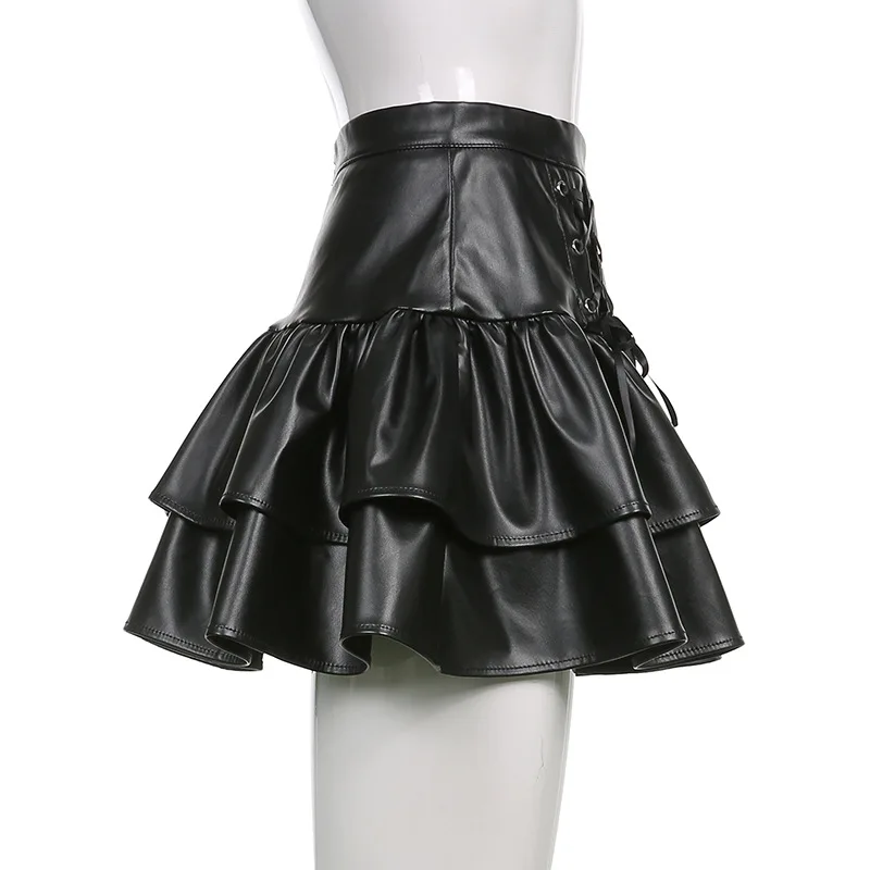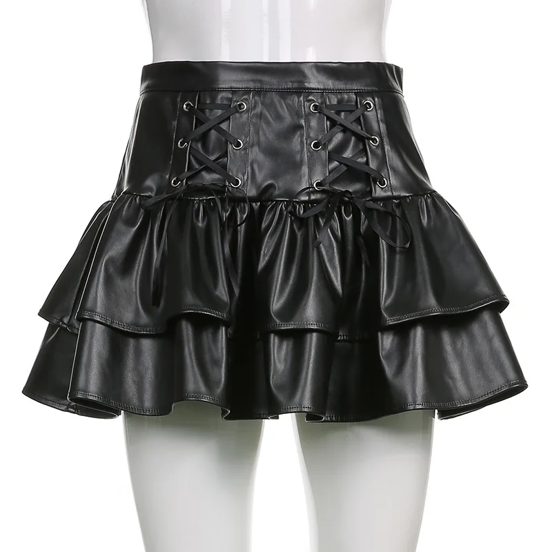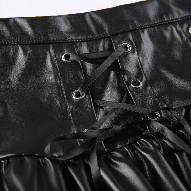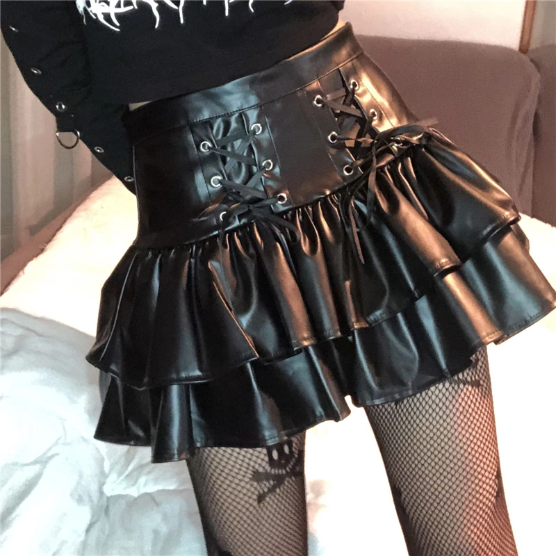 Yipinpay Cyberpunk Harajuku Pu Skirt Women Mall Gothic Y2k High Waist Lace-up Corset Cake Skirt Streetwear Grunge Indie Clubwear