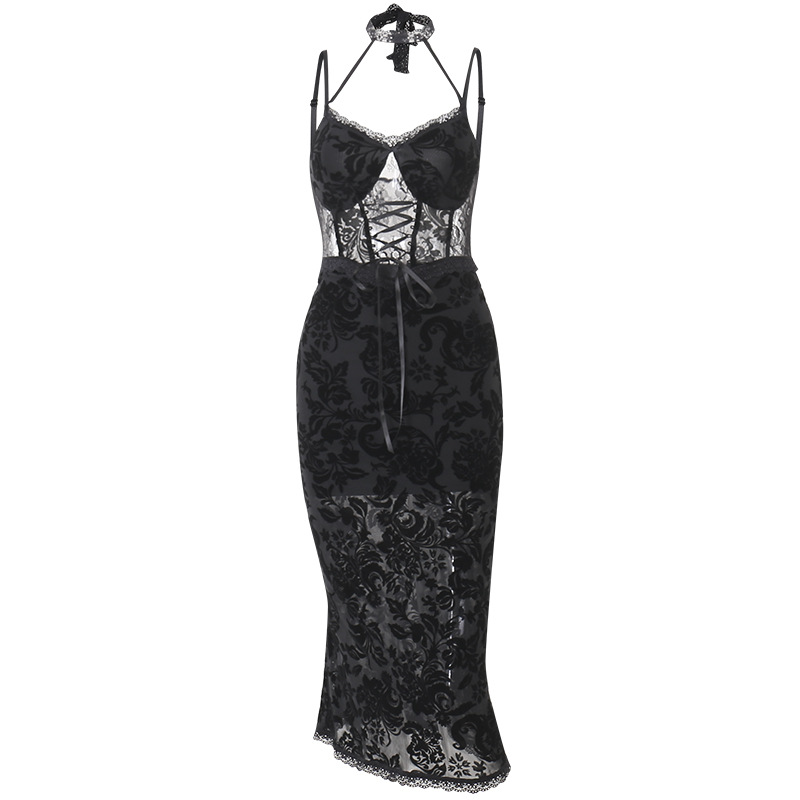 Yipinpay Dark 2024 Spring And Summer New Style Lace Lace Jacquard Suspender Slim Dress Woman
