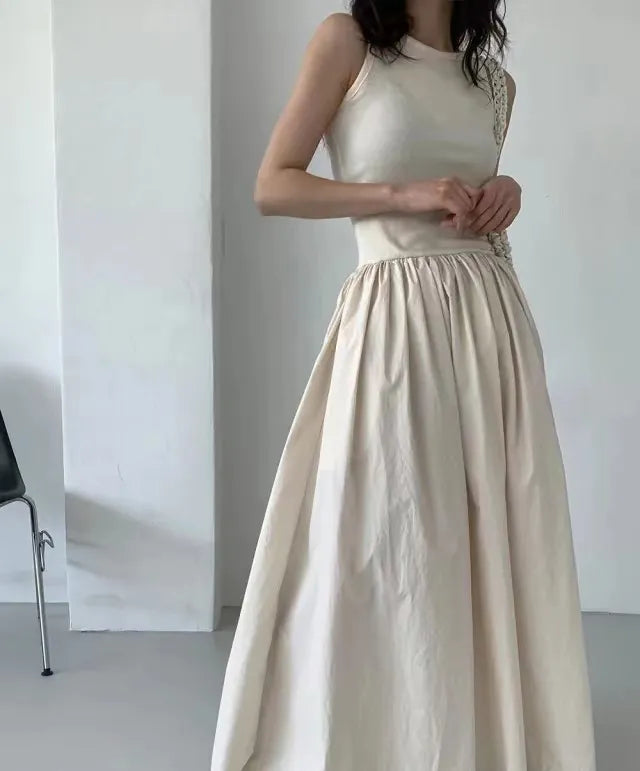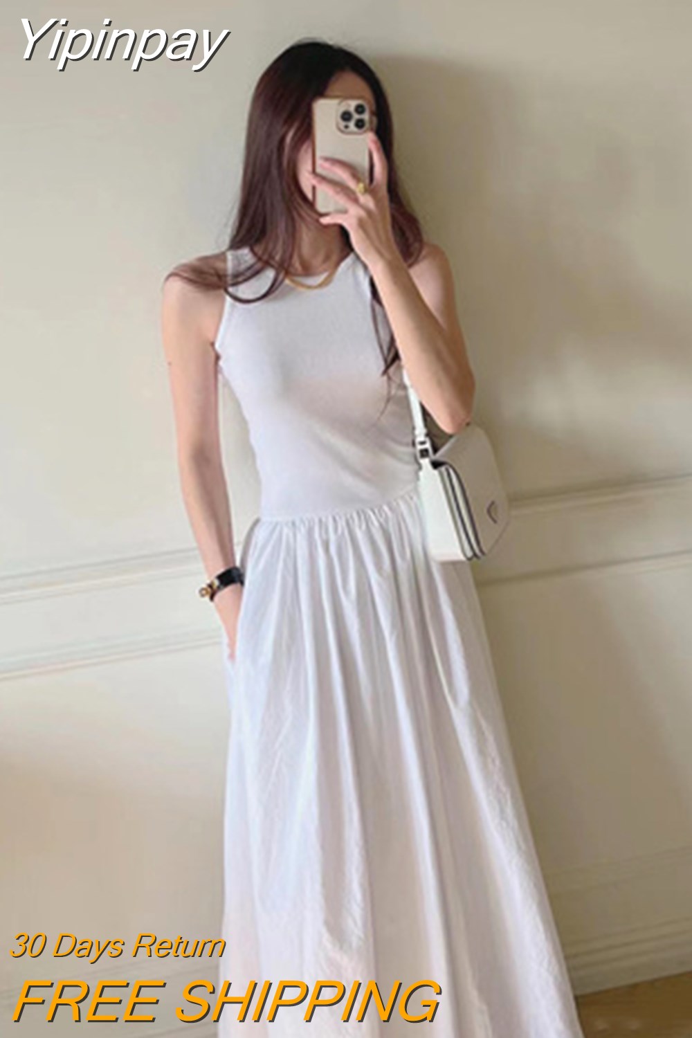 Yipinpay De Mujer Black O Neck Pleated Large Swing Sleeveless Dress Women Midi Fake Two Piece White Vest Dress Tank Casual