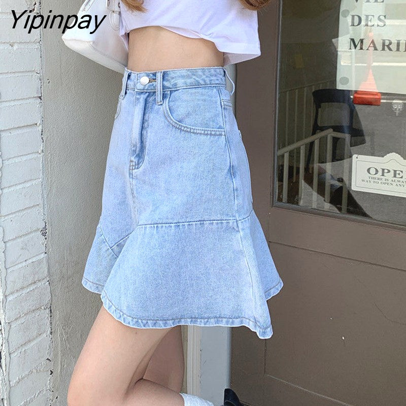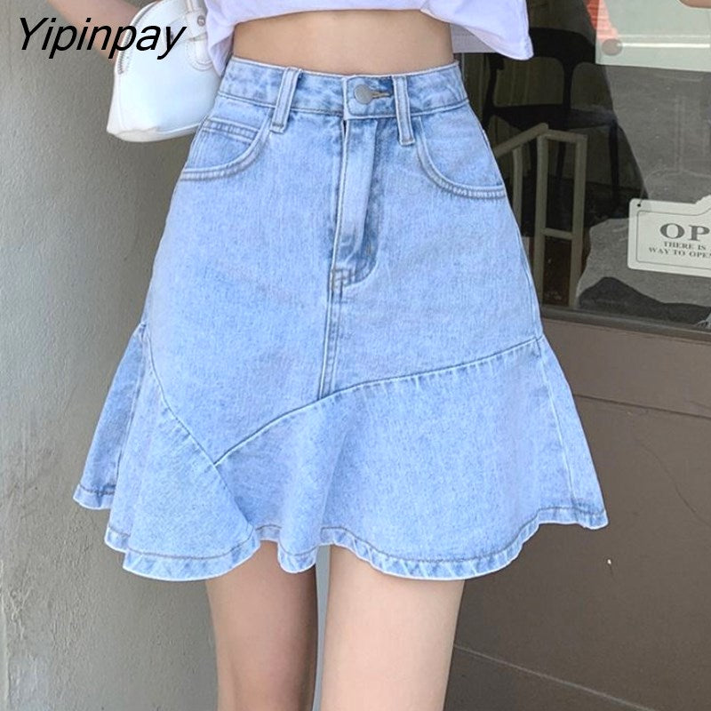 Yipinpay Design Fishtail Denim Skirt Women 2023 New Summer High Waist Thin Hot Girl Plus Size A-line Mini Skirt Female