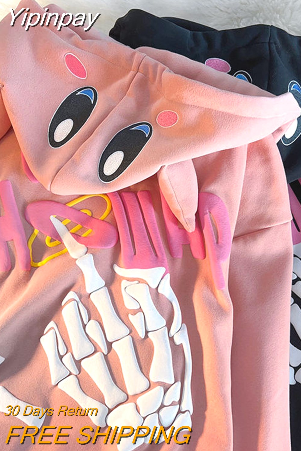 Yipinpay Devil Embroidery Hoodies Women Japanese Sweet Streetwear Cartoon Loose Sweatshirt Couple Zip Up Hoodie Goth Y2k Clothes
