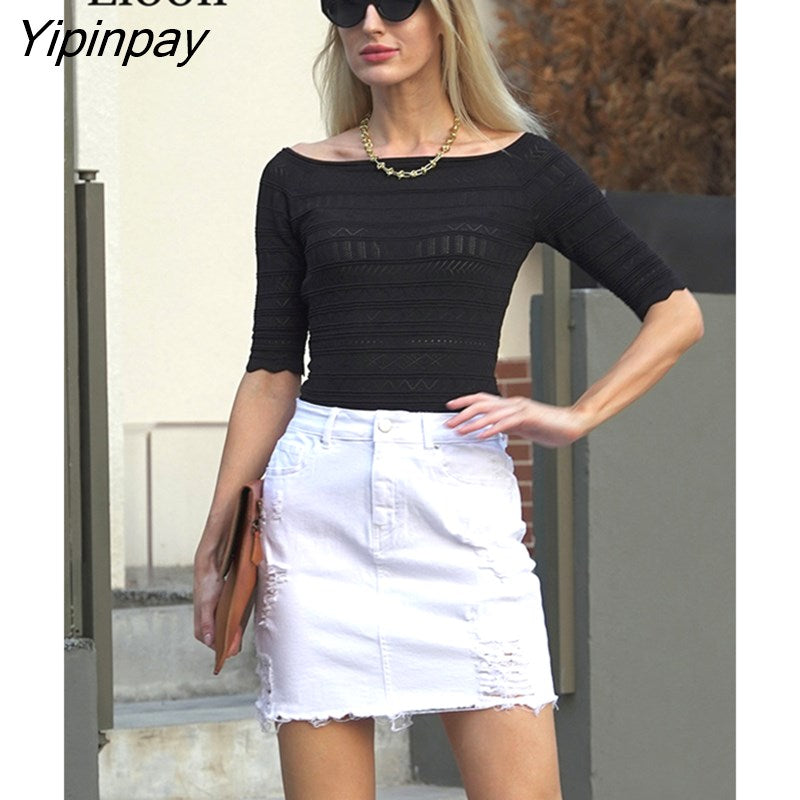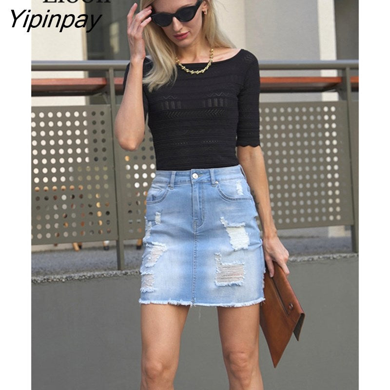 Yipinpay Distressed Ripped Sexy Denim Mini Skirts Women 2023 Summer Streetwear White High Waisted Hole Skinny Short Jean Skirts