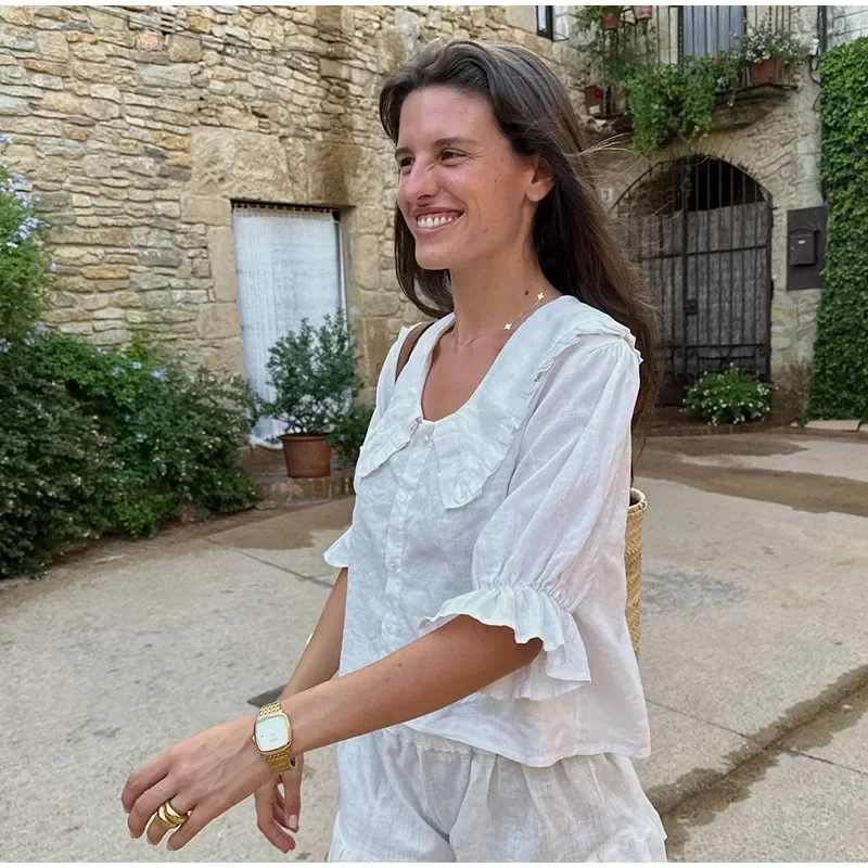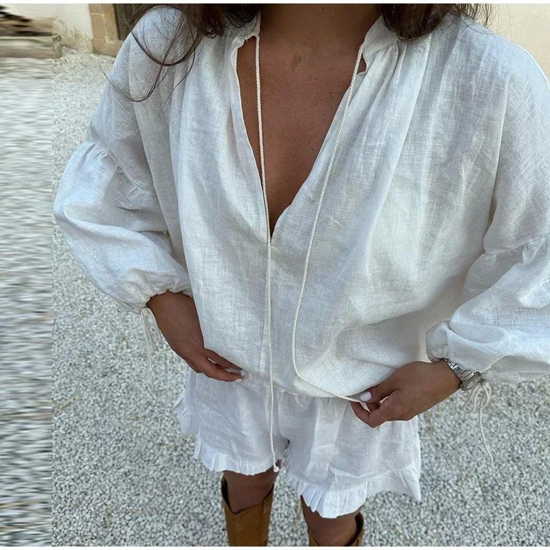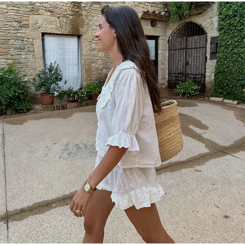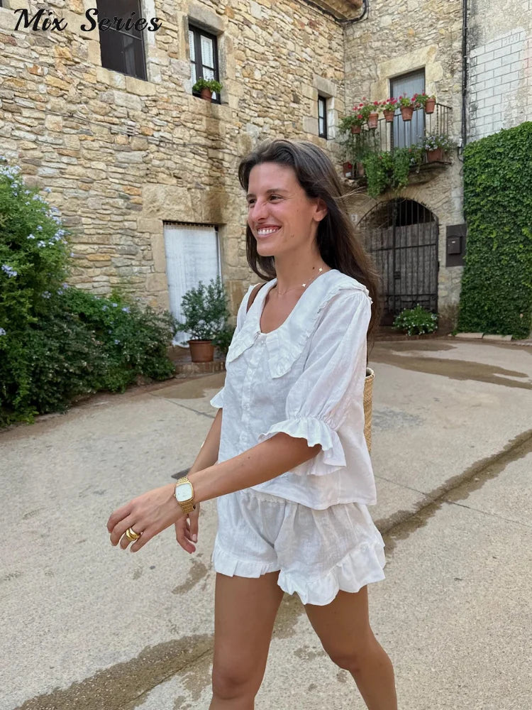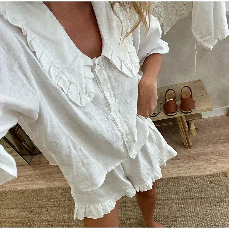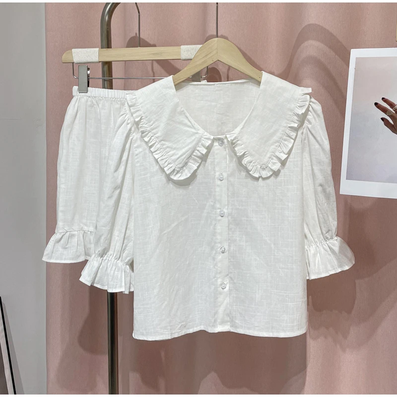 Model Number: Ruffle Doll Collar Shirts Shorts Suit