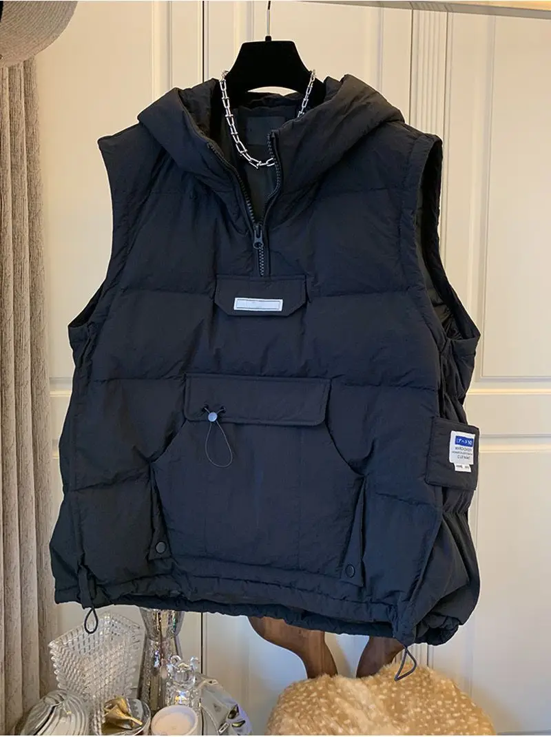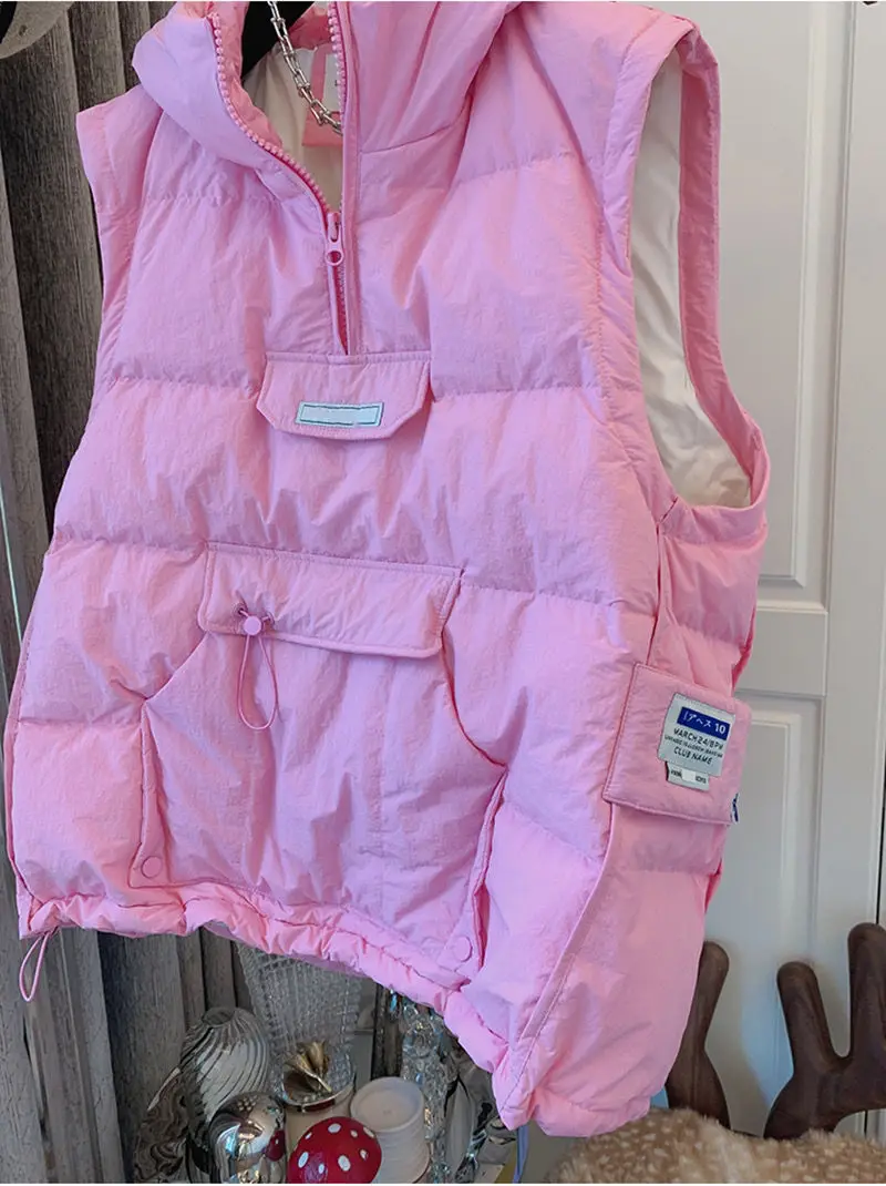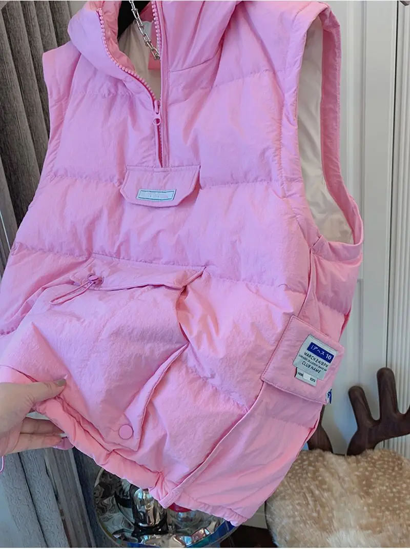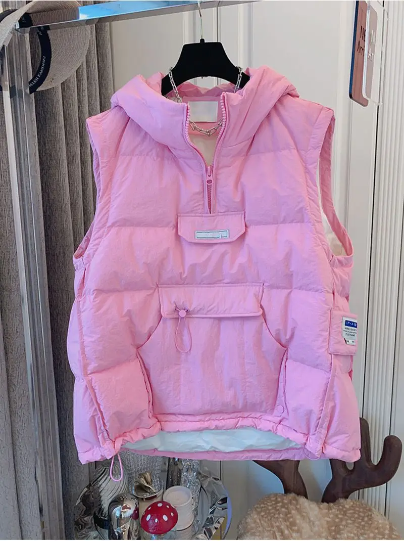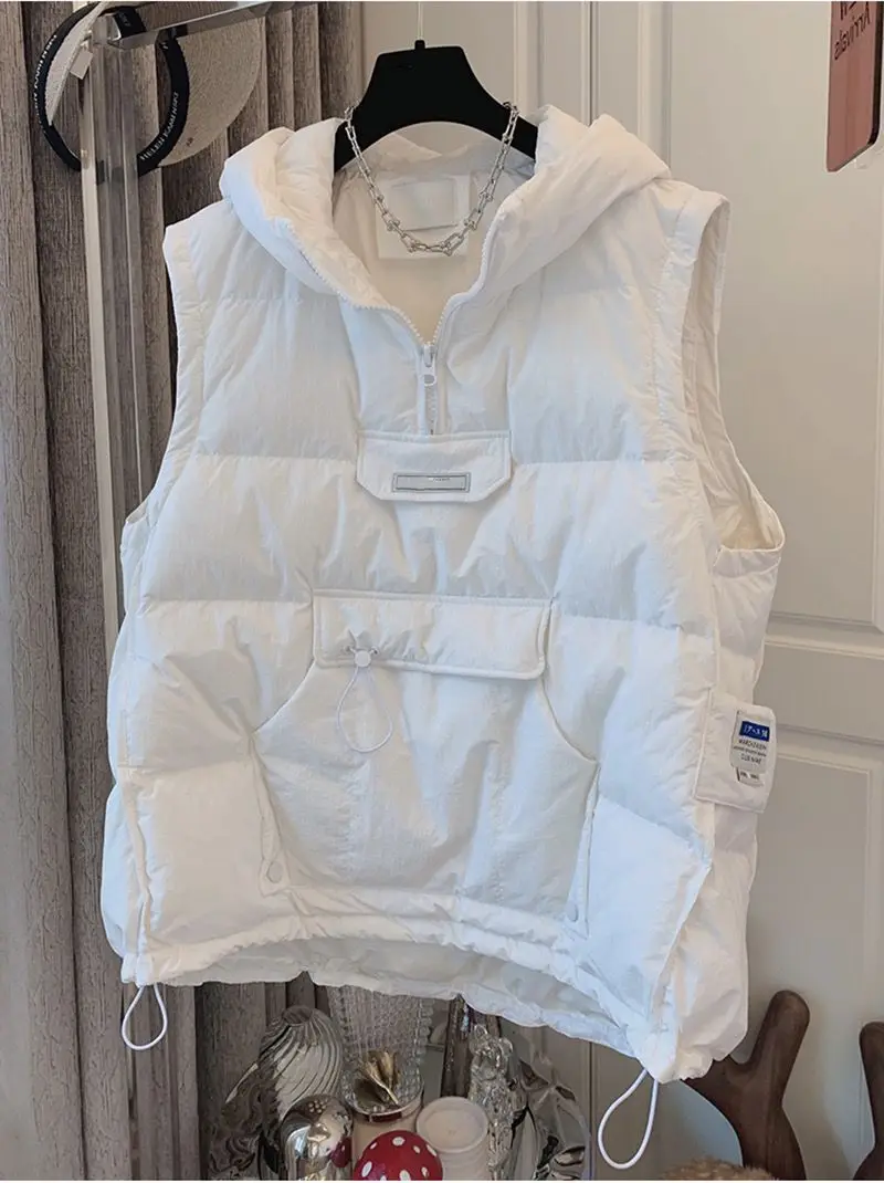 Yipinpay Down Coats Pockets Casual Loose Quilted Cotton Hooded Vest Women Chalecos Mujer Cropped Parkas Top Autumn Jackets 2023