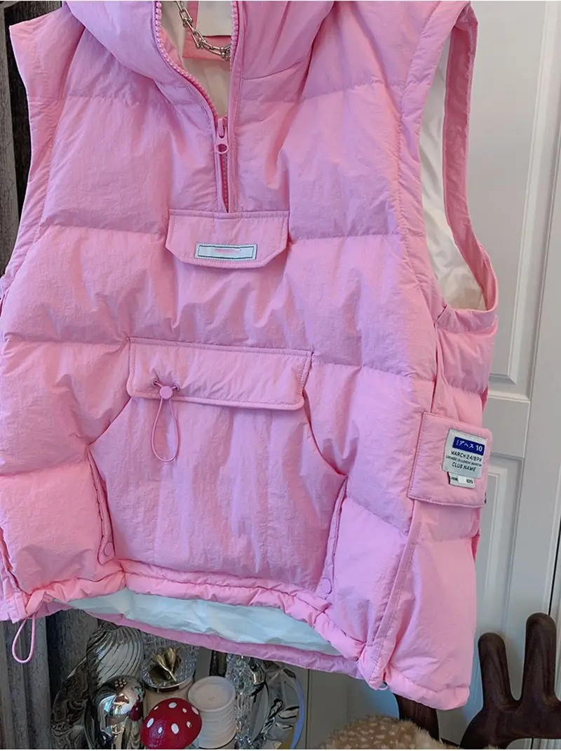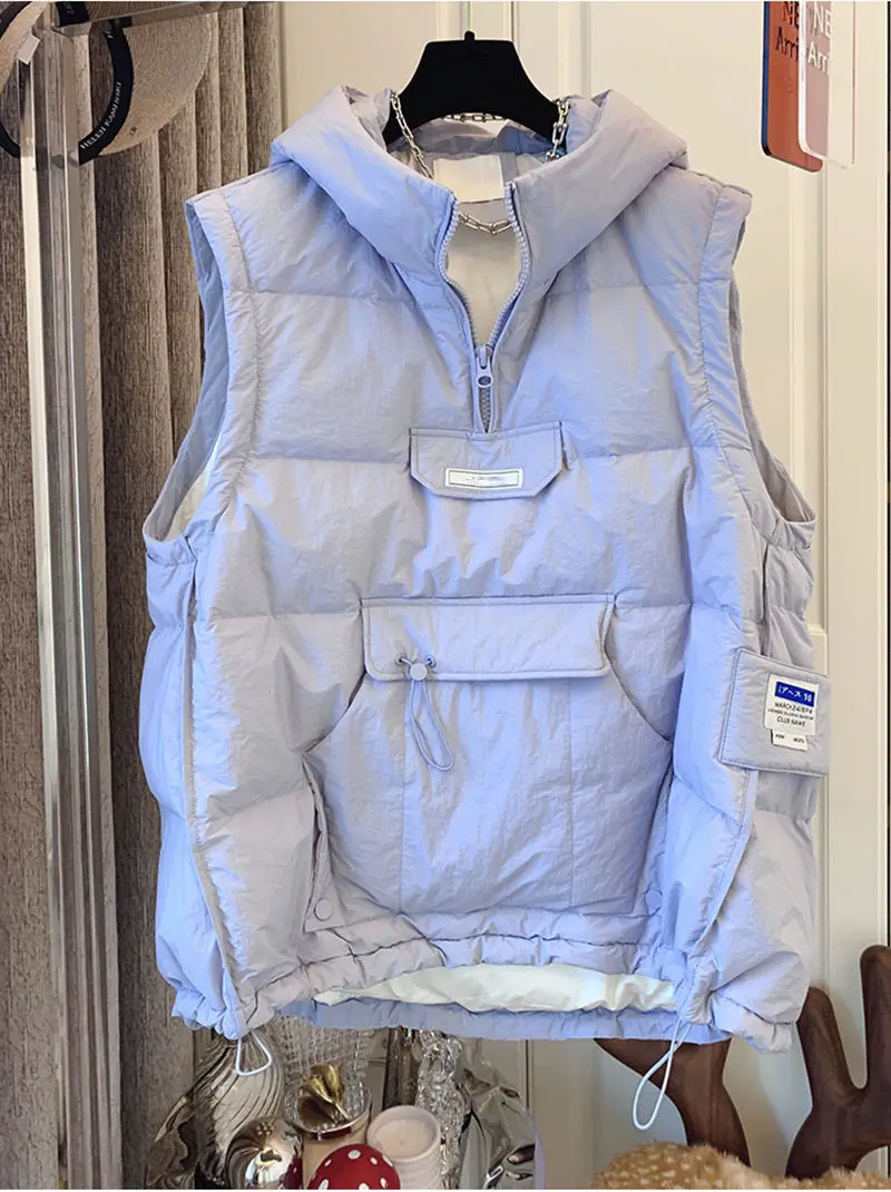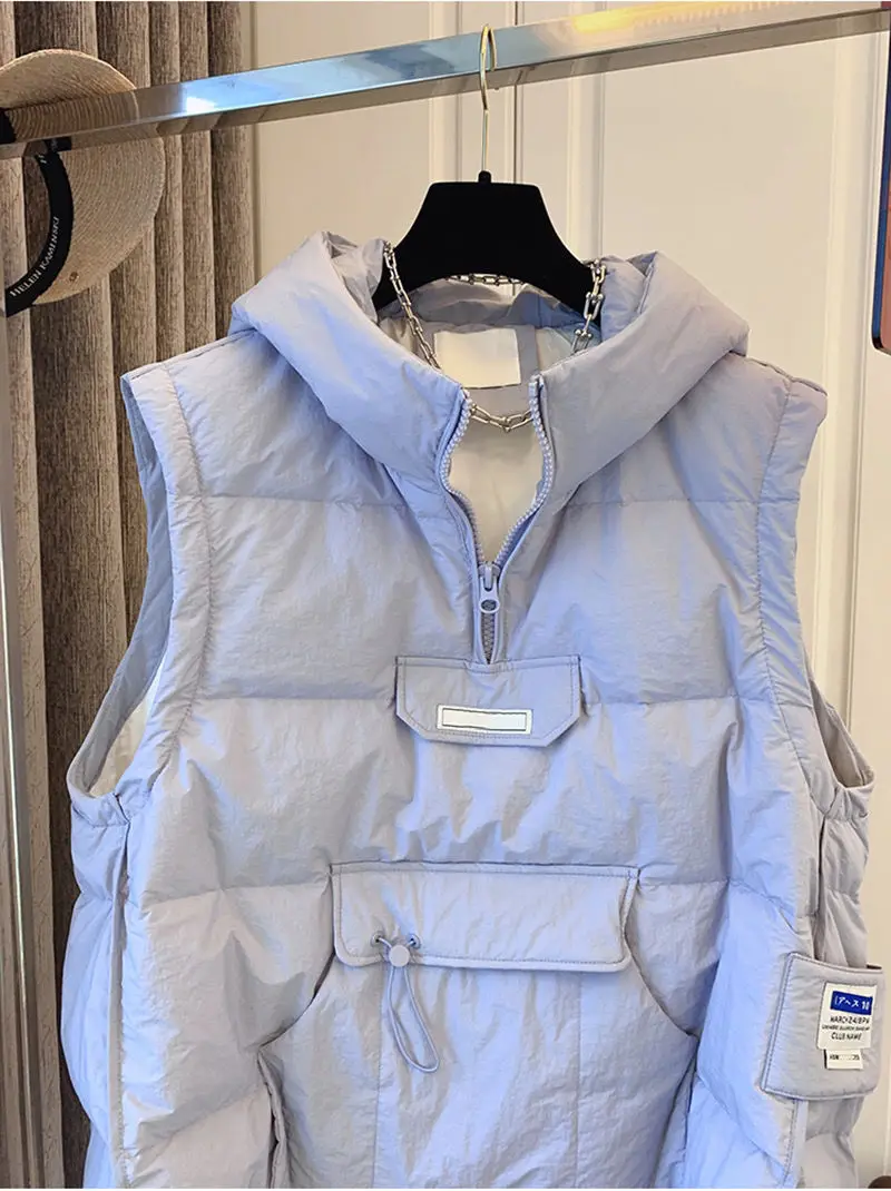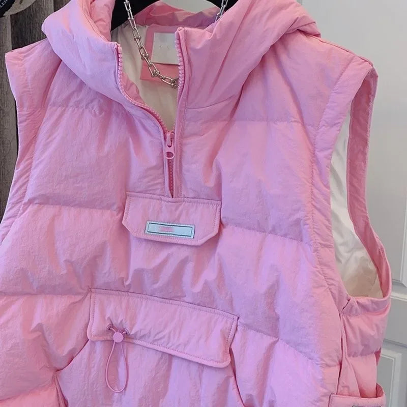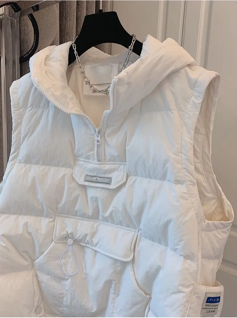 Yipinpay Down Coats Pockets Casual Loose Quilted Cotton Hooded Vest Women Chalecos Mujer Cropped Parkas Top Autumn Jackets 2023