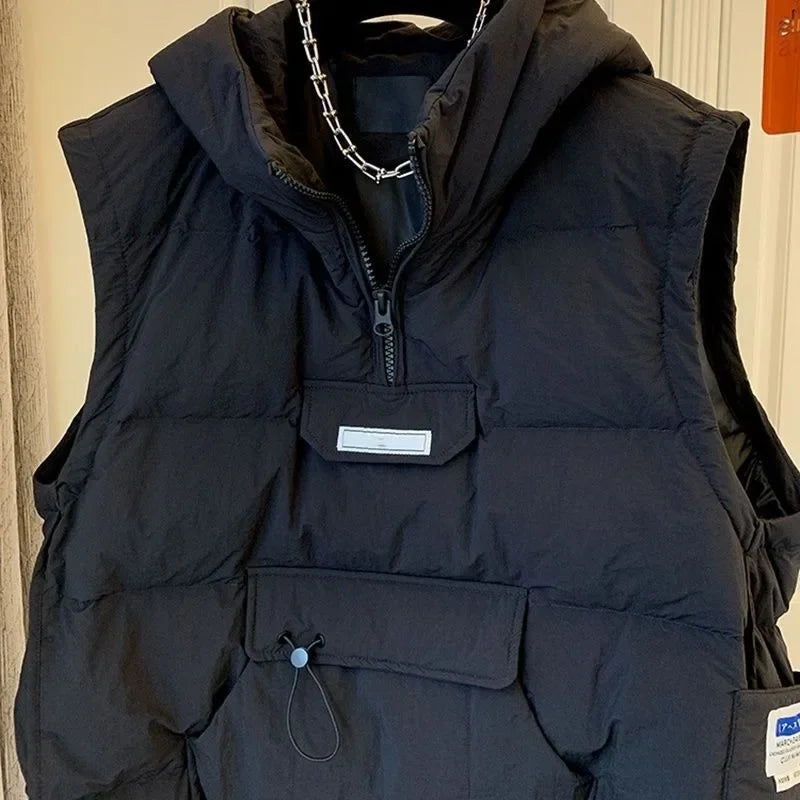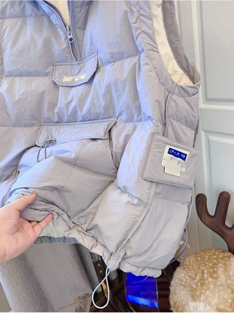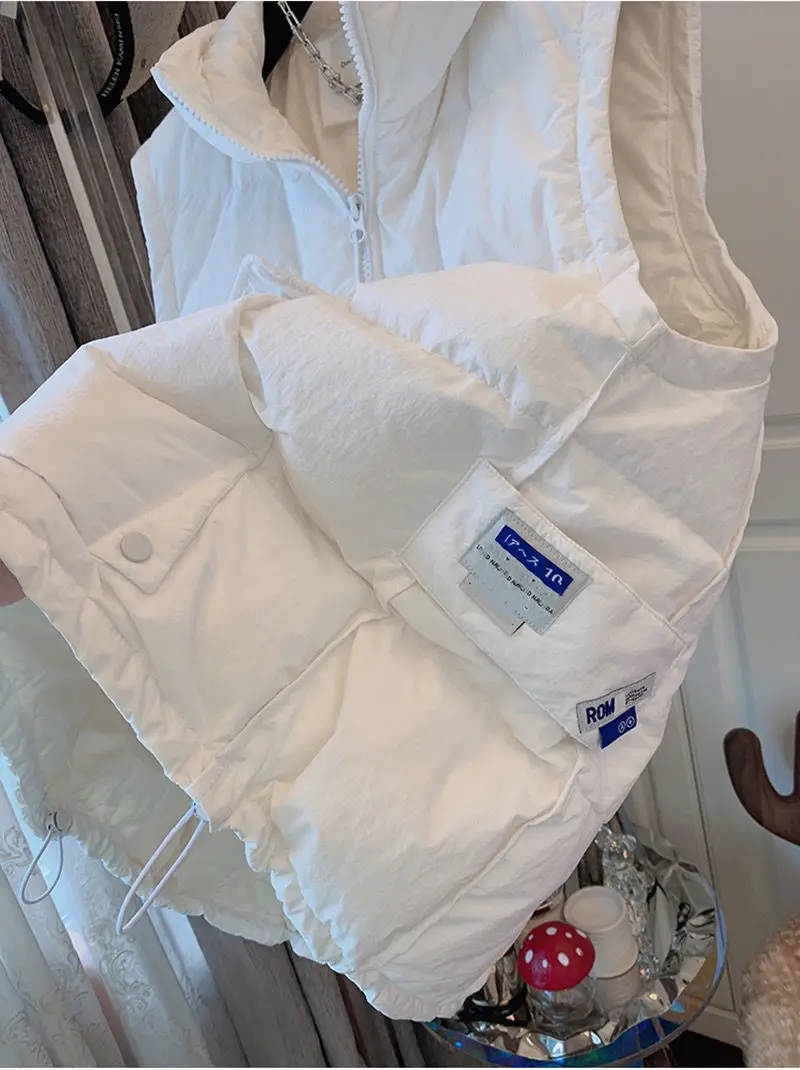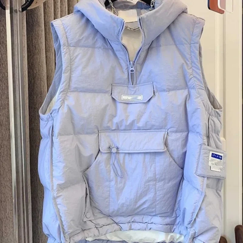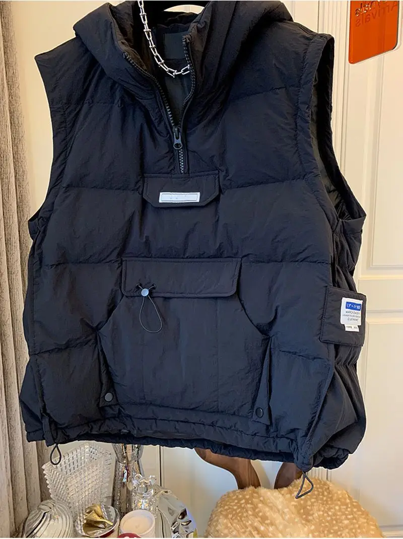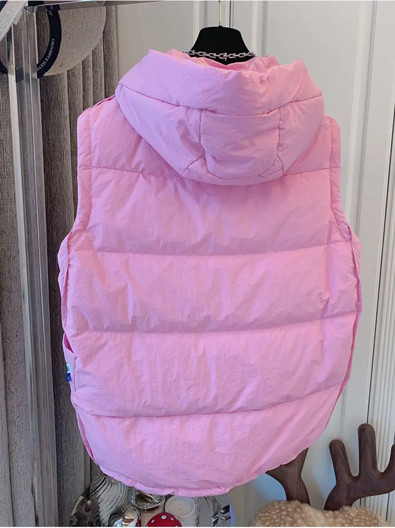 Yipinpay Down Coats Pockets Casual Loose Quilted Cotton Hooded Vest Women Chalecos Mujer Cropped Parkas Top Autumn Jackets 2023