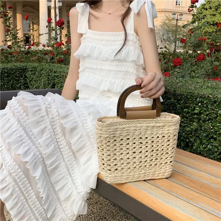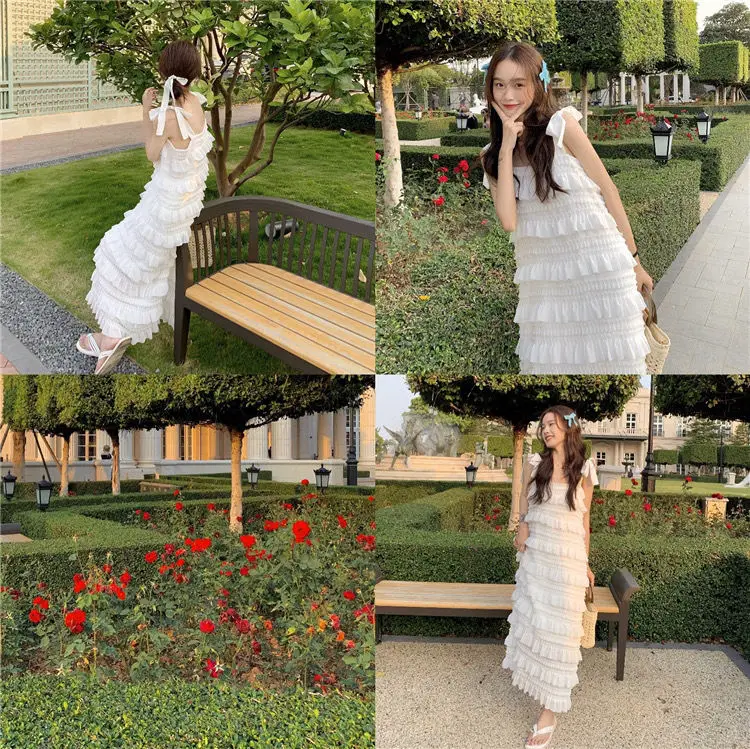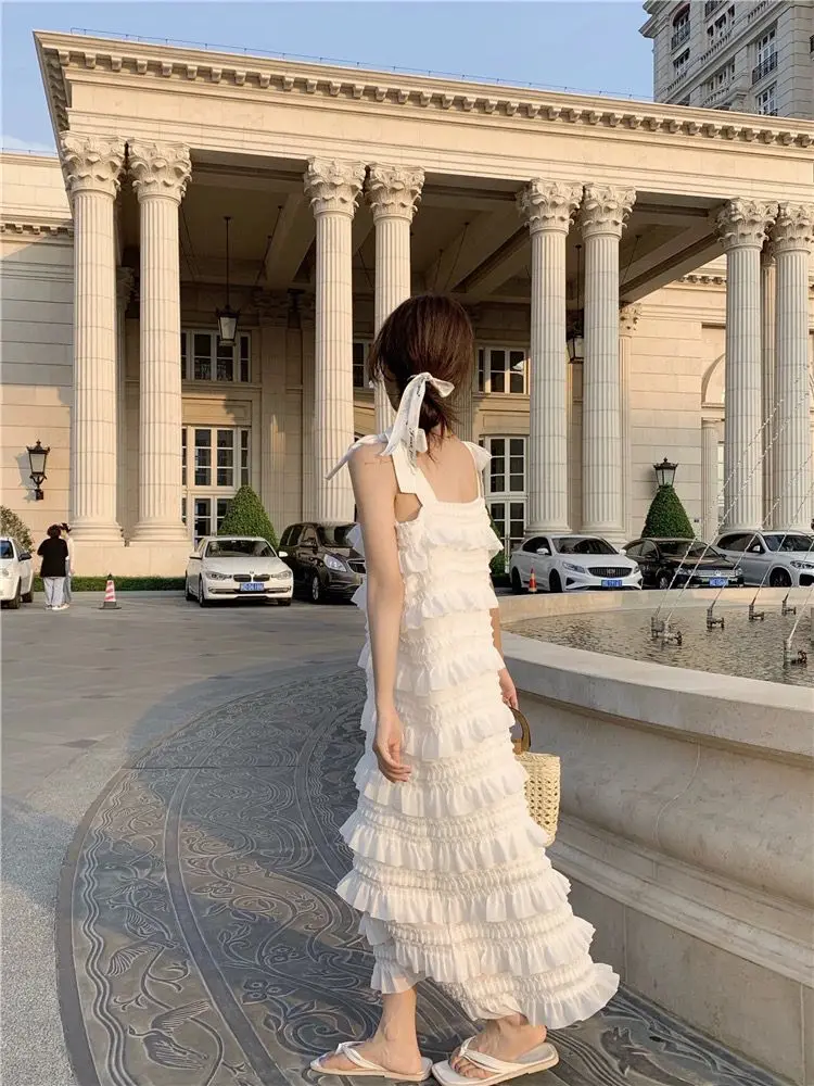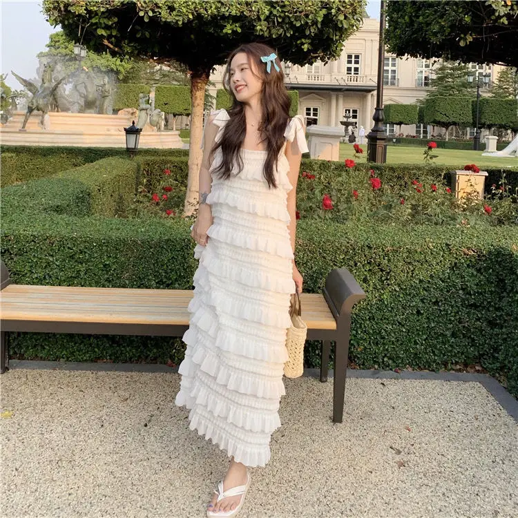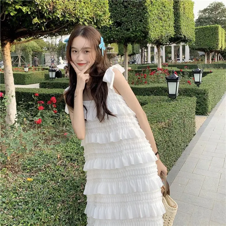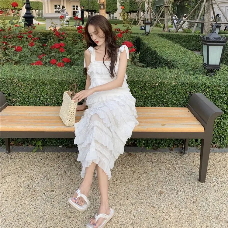 Yipinpay Dress 2023 Summer Fashion New Loose High Waist Strap Sleeveless Black Strapless Maxi Dresses Fairy Trendy White Cake Dress