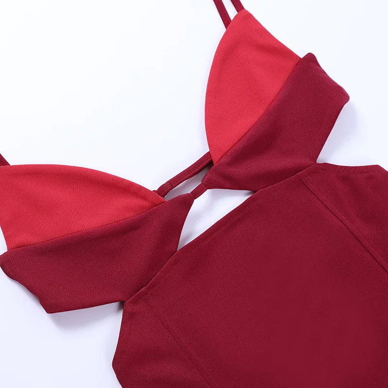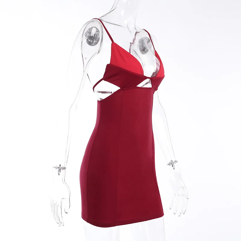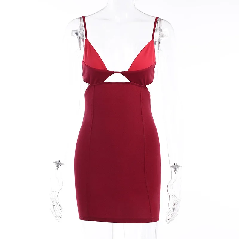 yipinpay Dress Cut Out Sexy Dress Backless Mini Dress Sleeveless Bodycon Dress Party Club Outfit Solid Red Party Dresses Women 2023