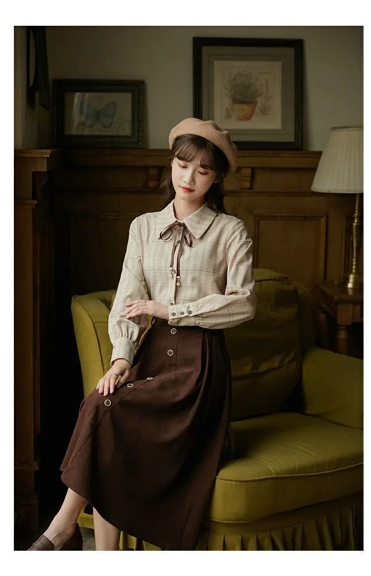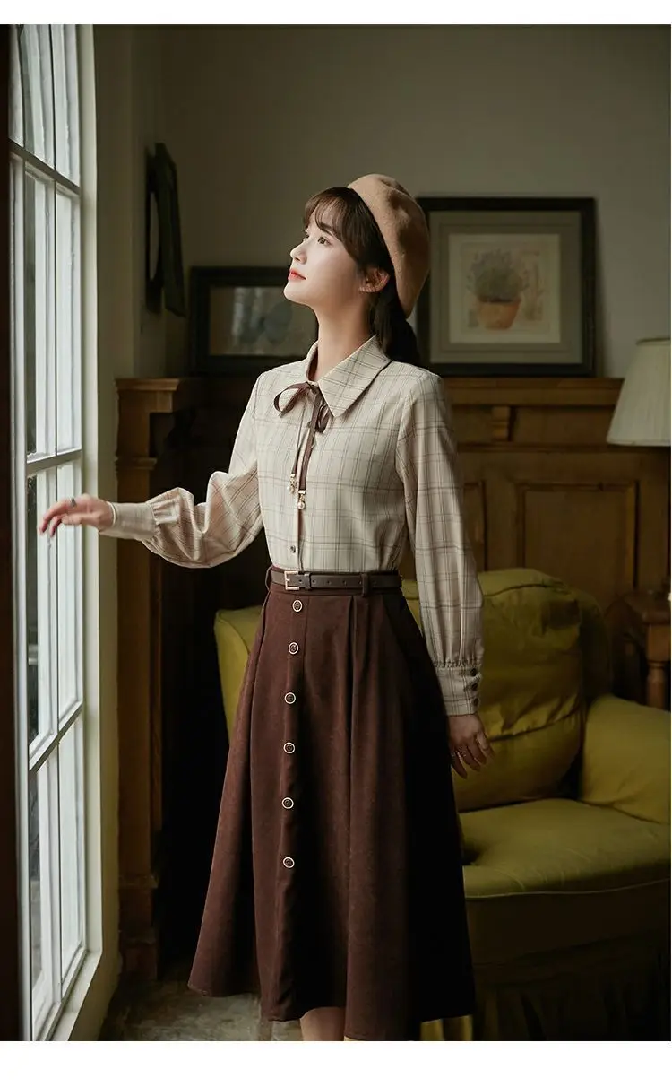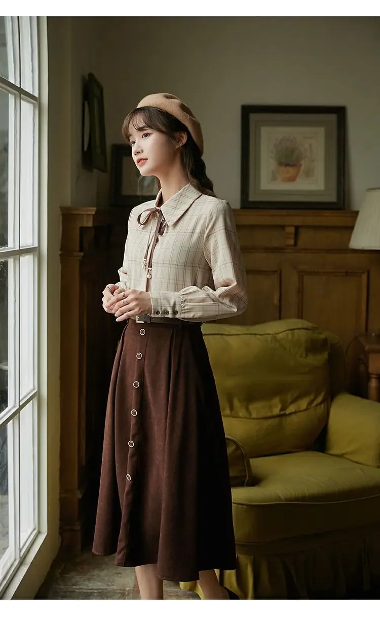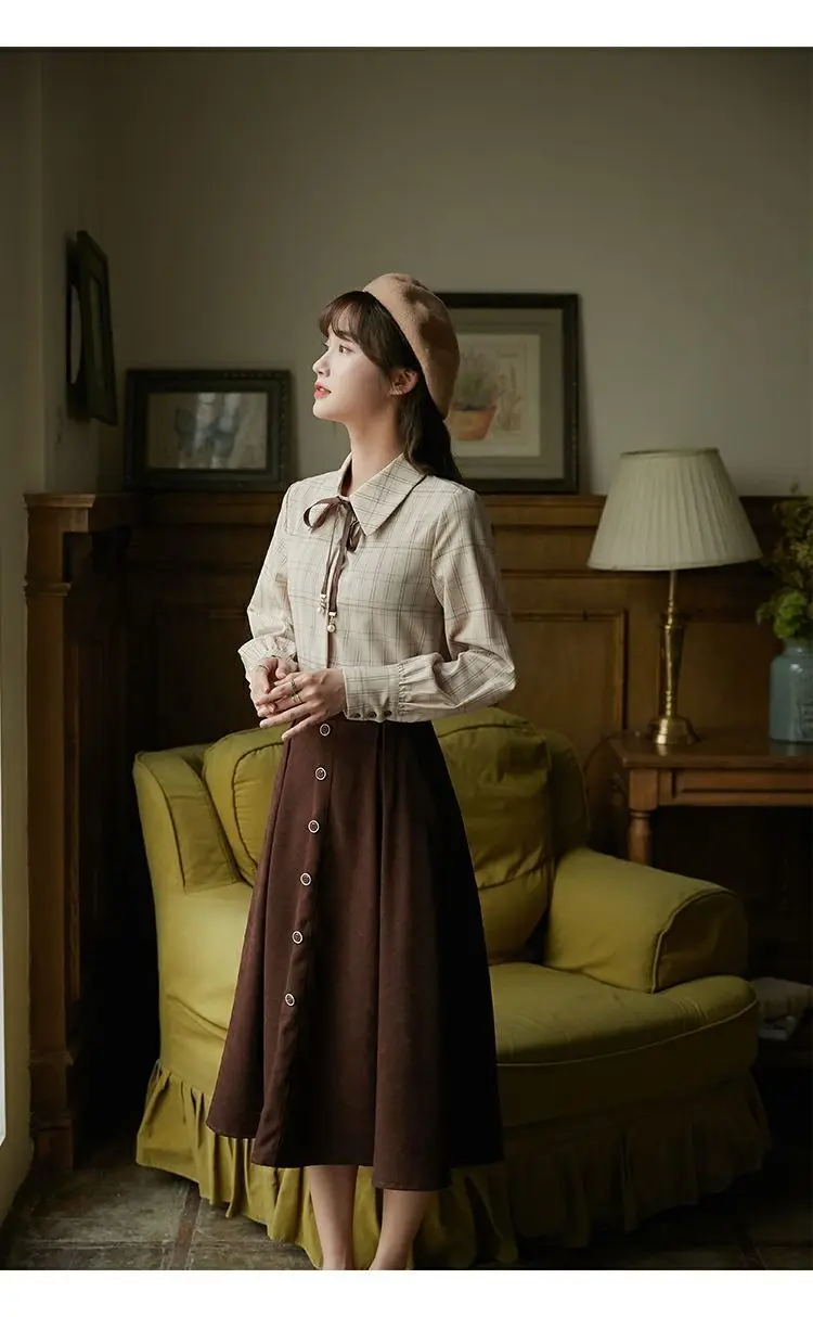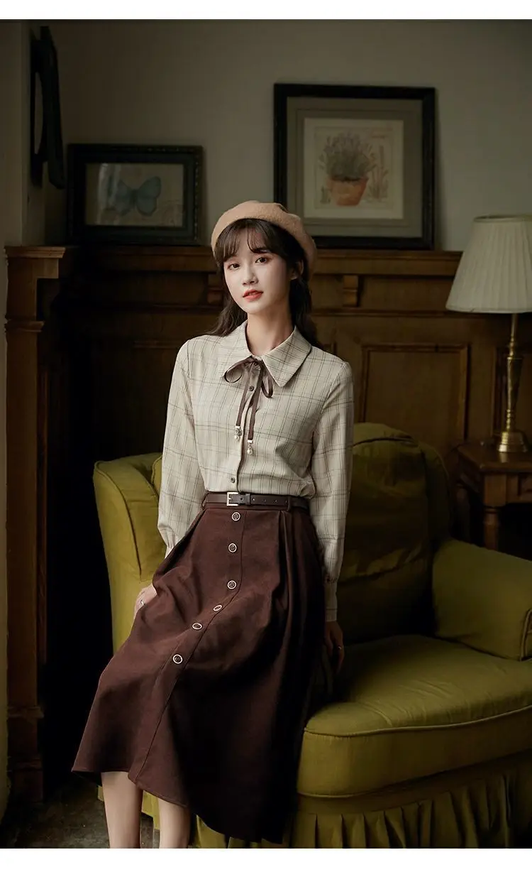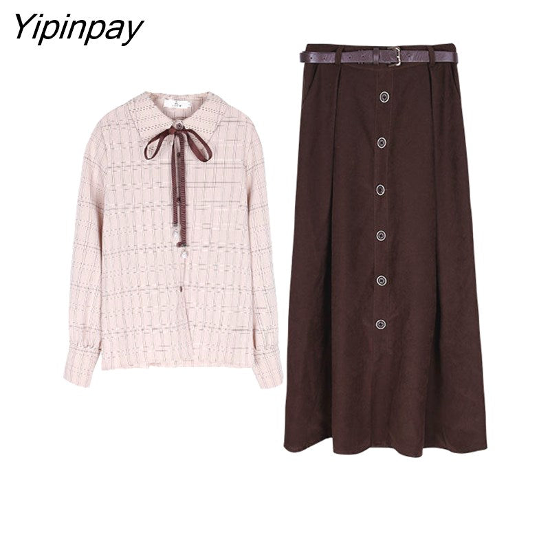 Yipinpay Dress Set Women Autumn 2023 New Lady Style Two Pieces Set Turn-down Collar Shirt and Skirt Autumn