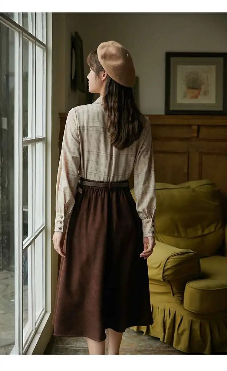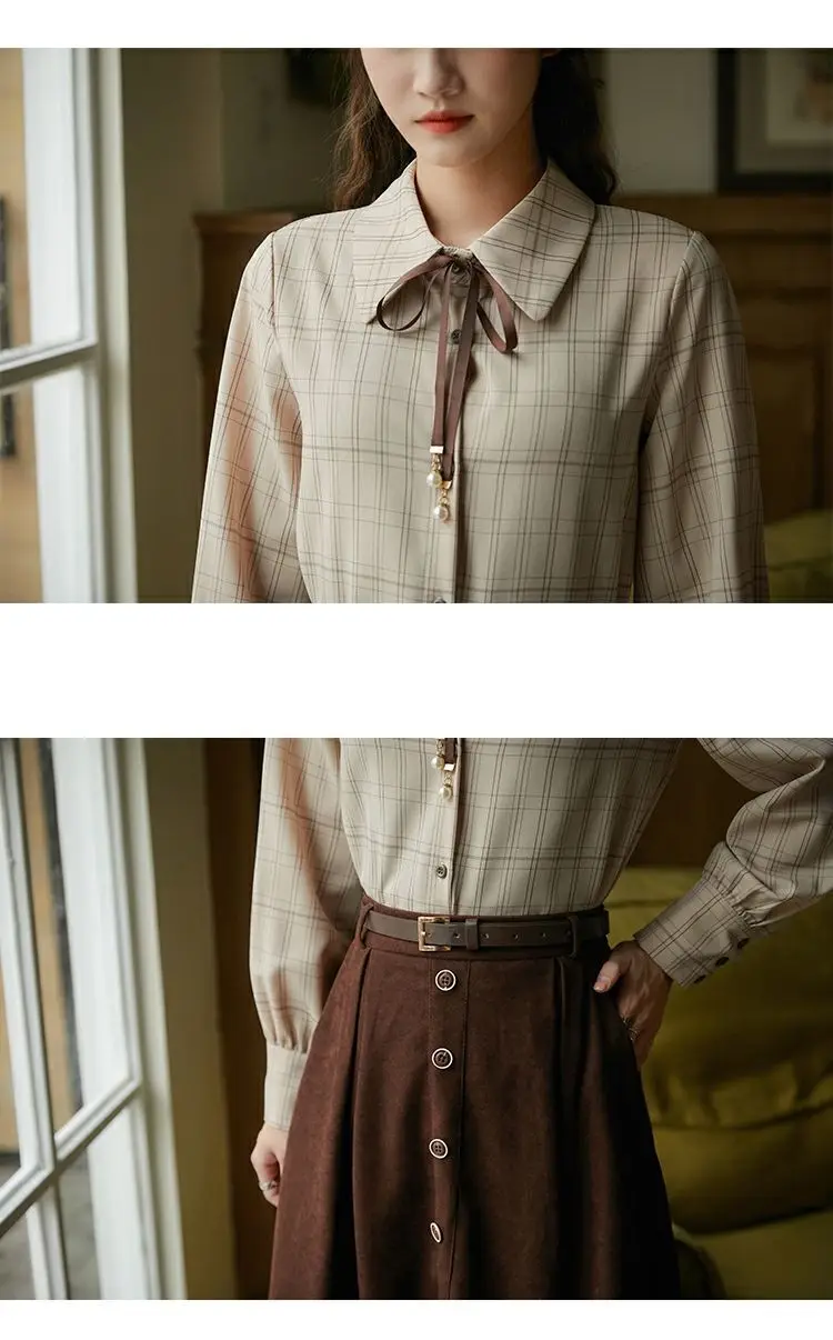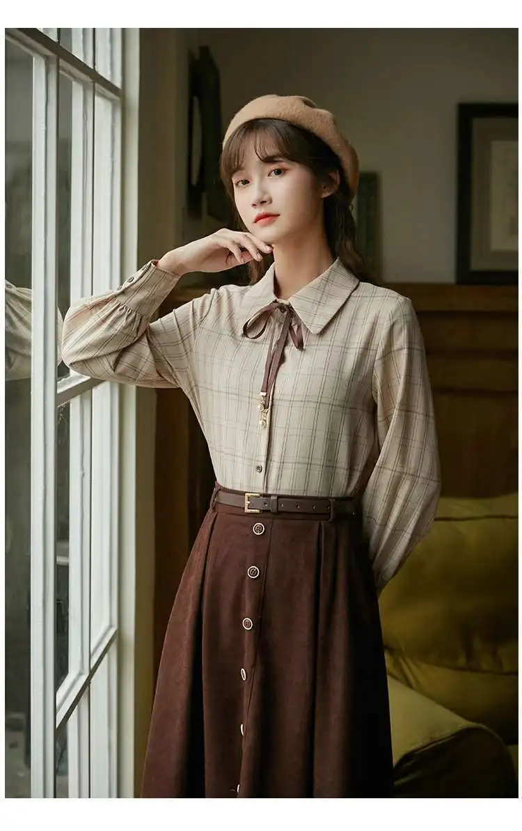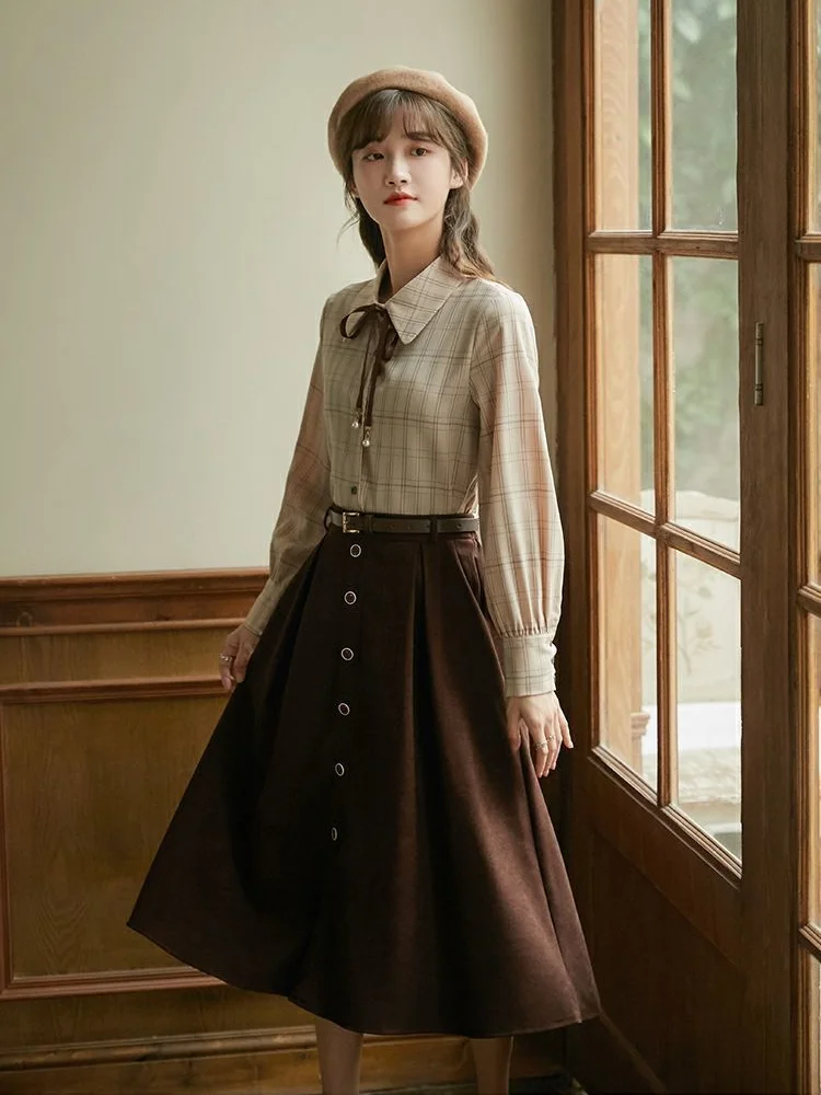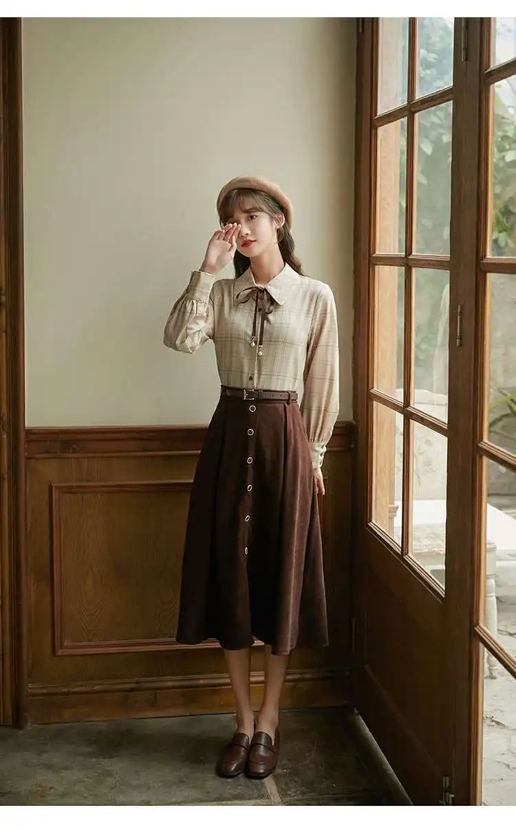 Yipinpay Dress Set Women Autumn 2023 New Lady Style Two Pieces Set Turn-down Collar Shirt and Skirt Autumn