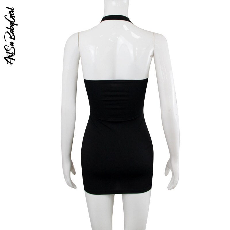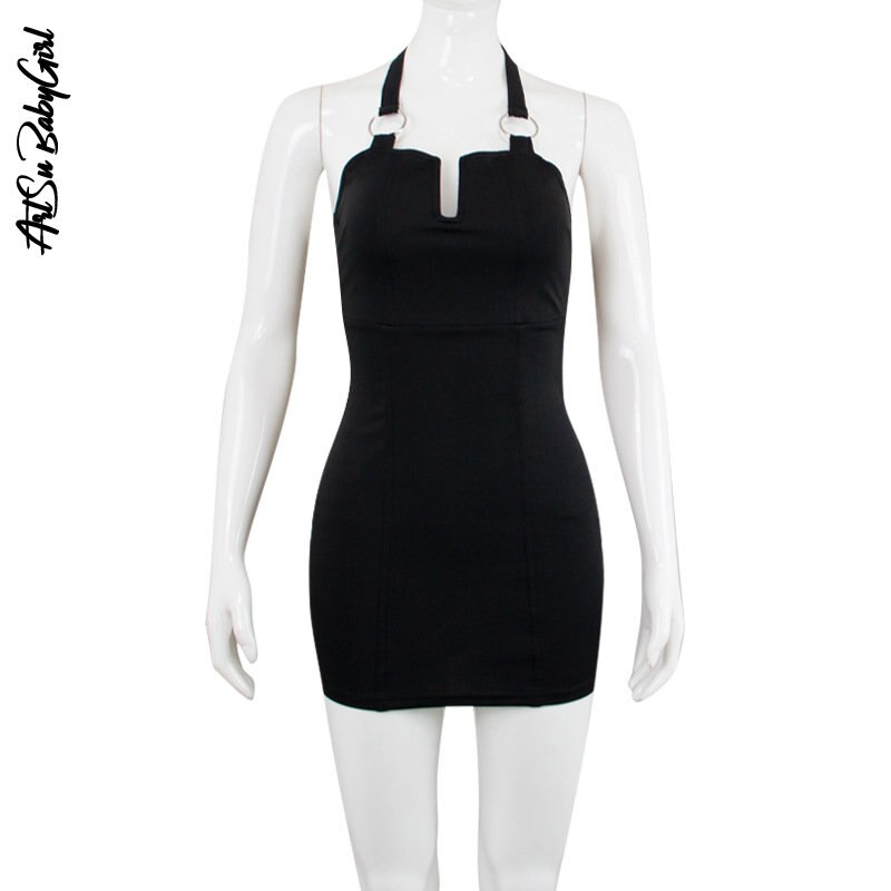 yipinpay Dresses Off Shoulder Mini Dress Halter Neck Festival Outfits Streetwear Y2k Solid Sleeveless Black Dress Women's Clothing