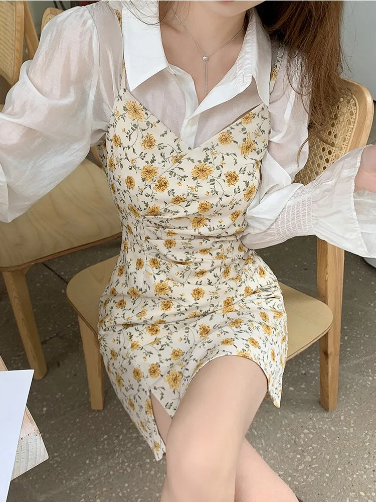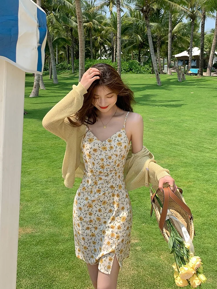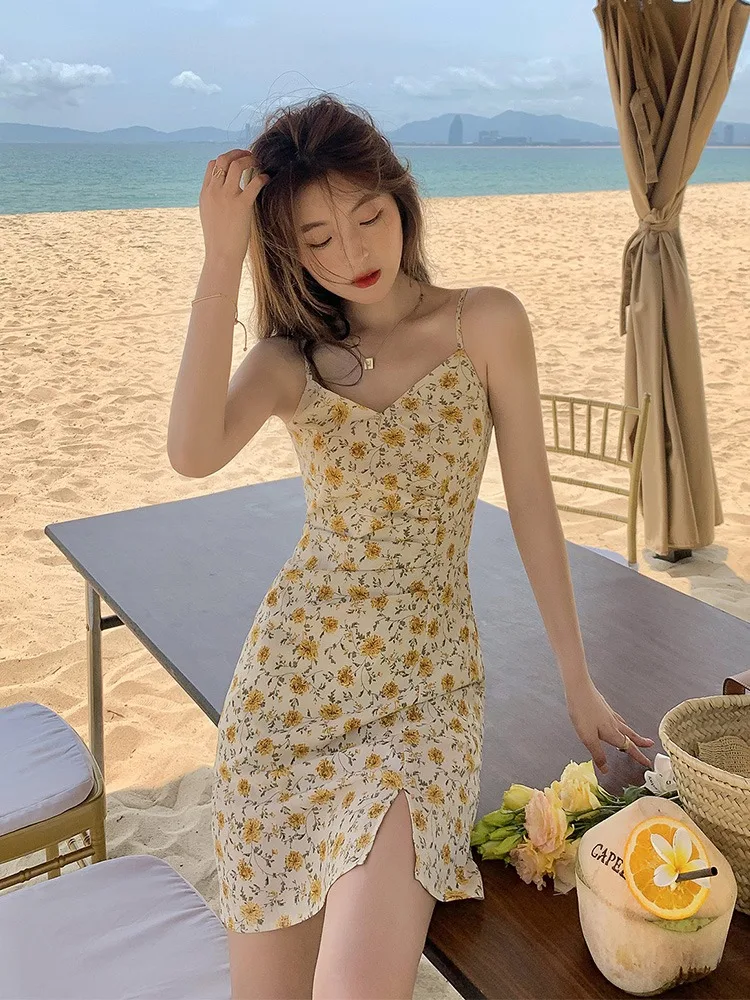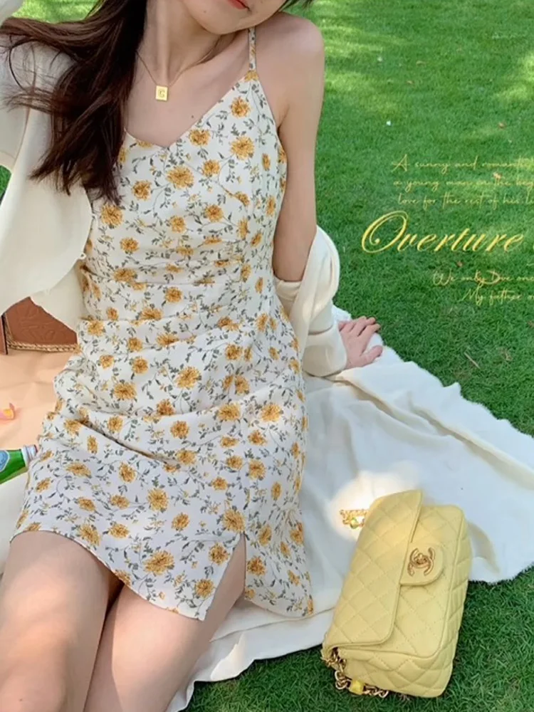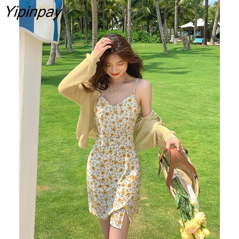 Yipinpay Dresses Women 2023 Evening Print Suspenders Mini Sleeveless Korean Fashion Casual Sexy Harajuku Party Vintage Y2k Clothes