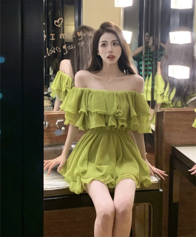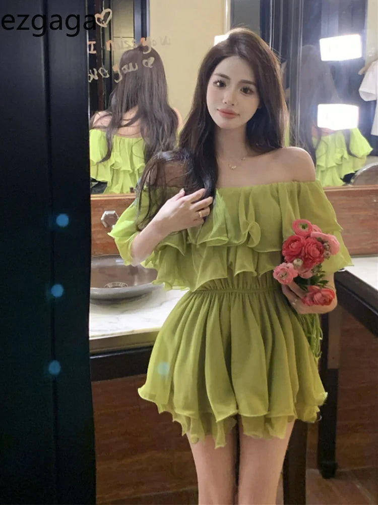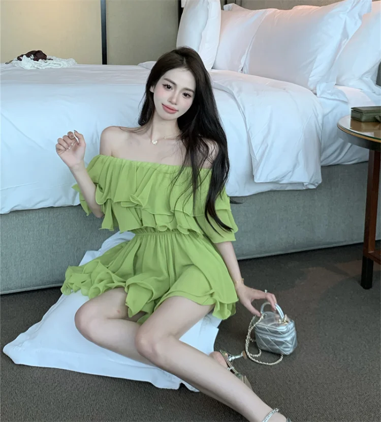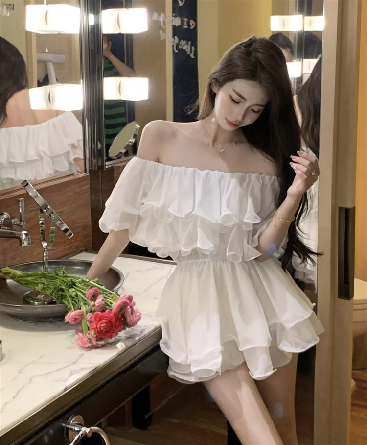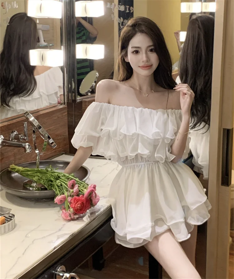 Yipinpay Dresses Women Off Shoulder Slash Neck Ruffles Sexy Spring Summer Patchwork Solid Loose Elegant Mini Dress Ladies Fashion