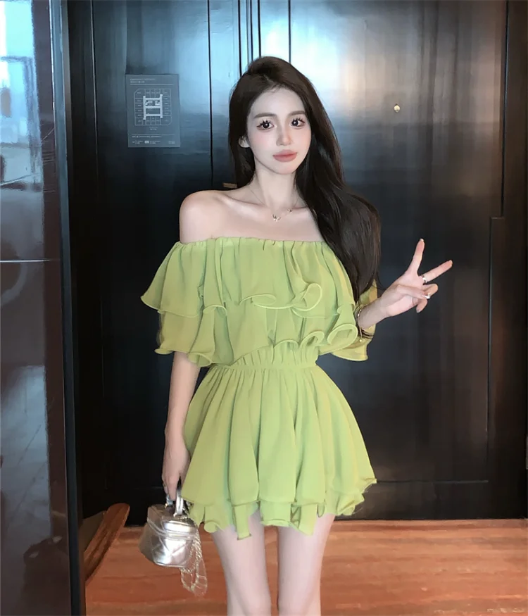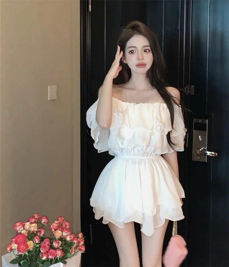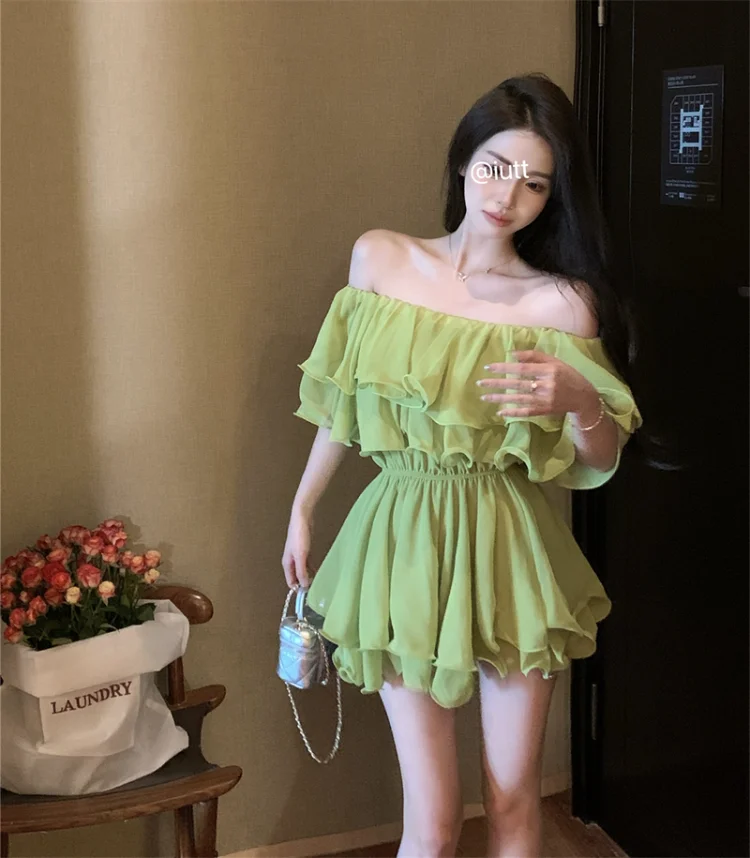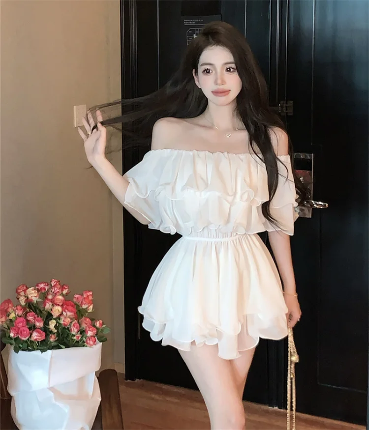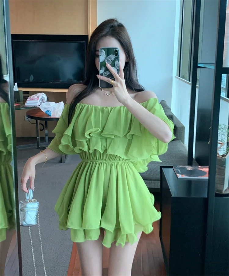 Yipinpay Dresses Women Off Shoulder Slash Neck Ruffles Sexy Spring Summer Patchwork Solid Loose Elegant Mini Dress Ladies Fashion