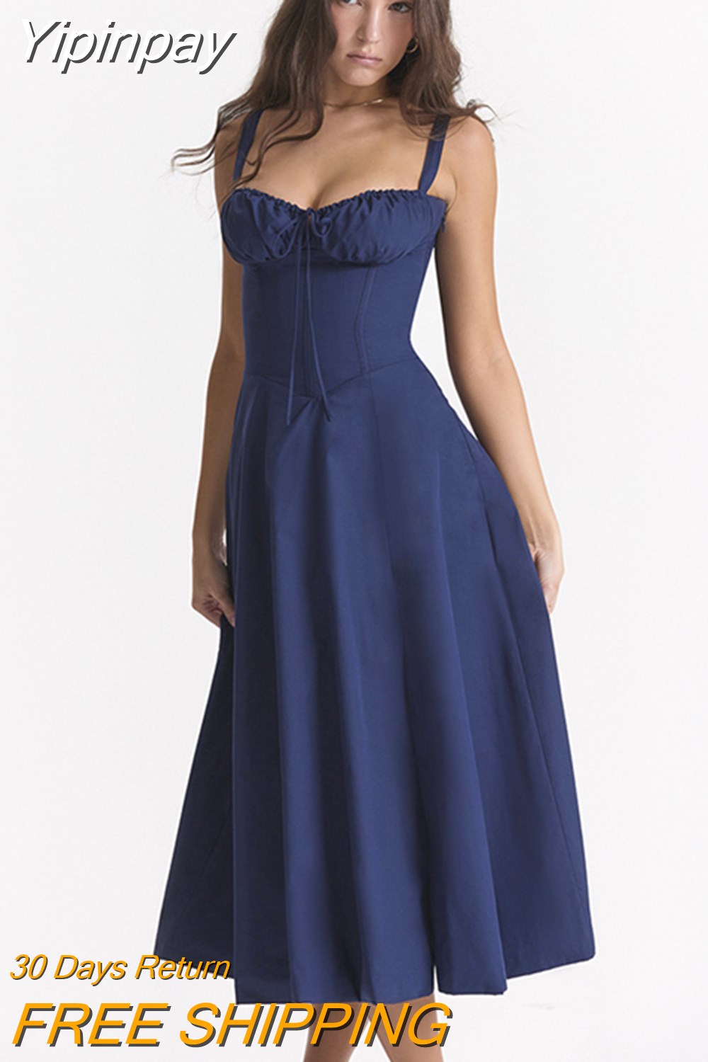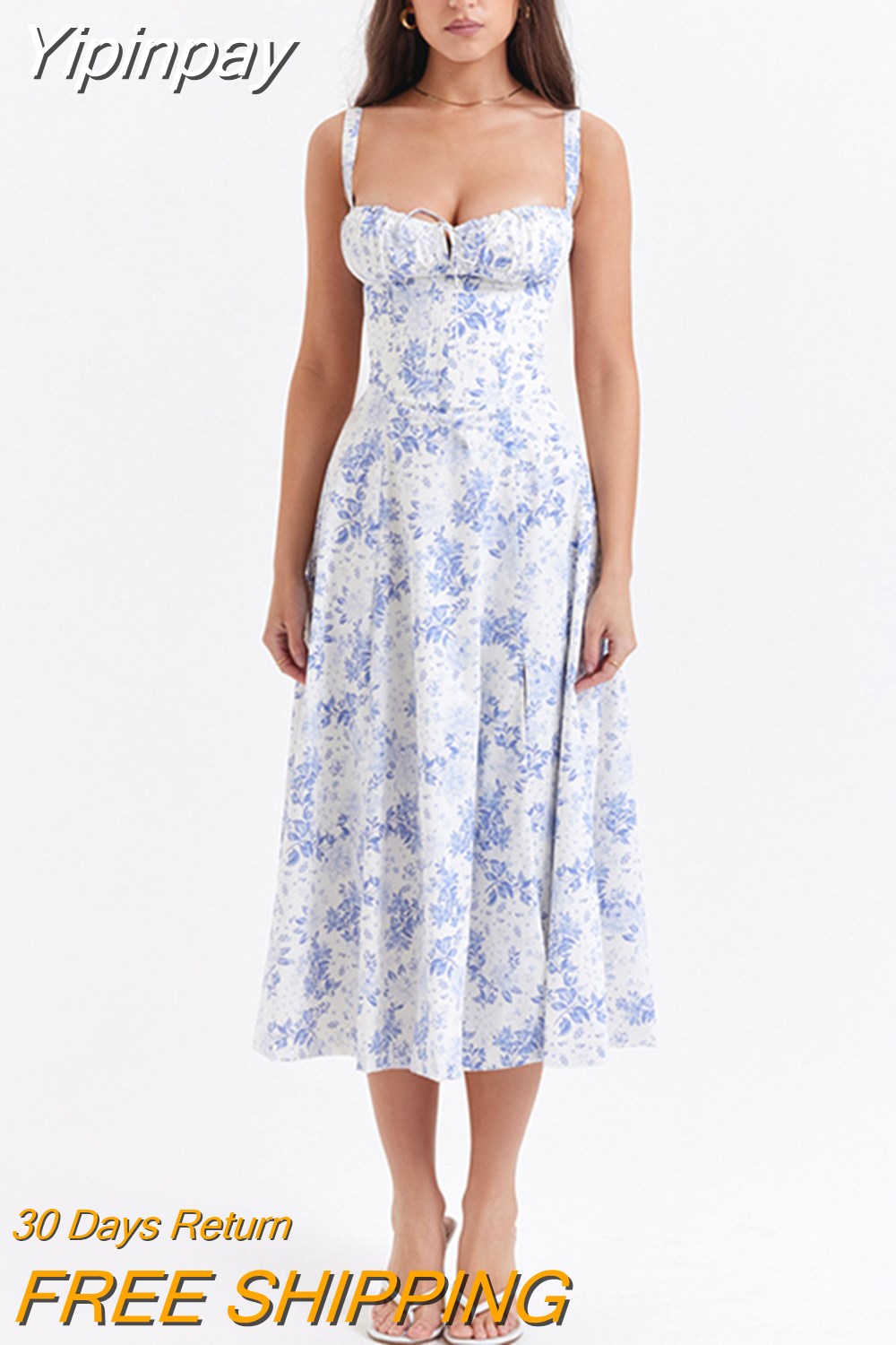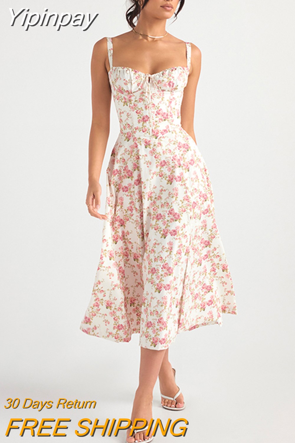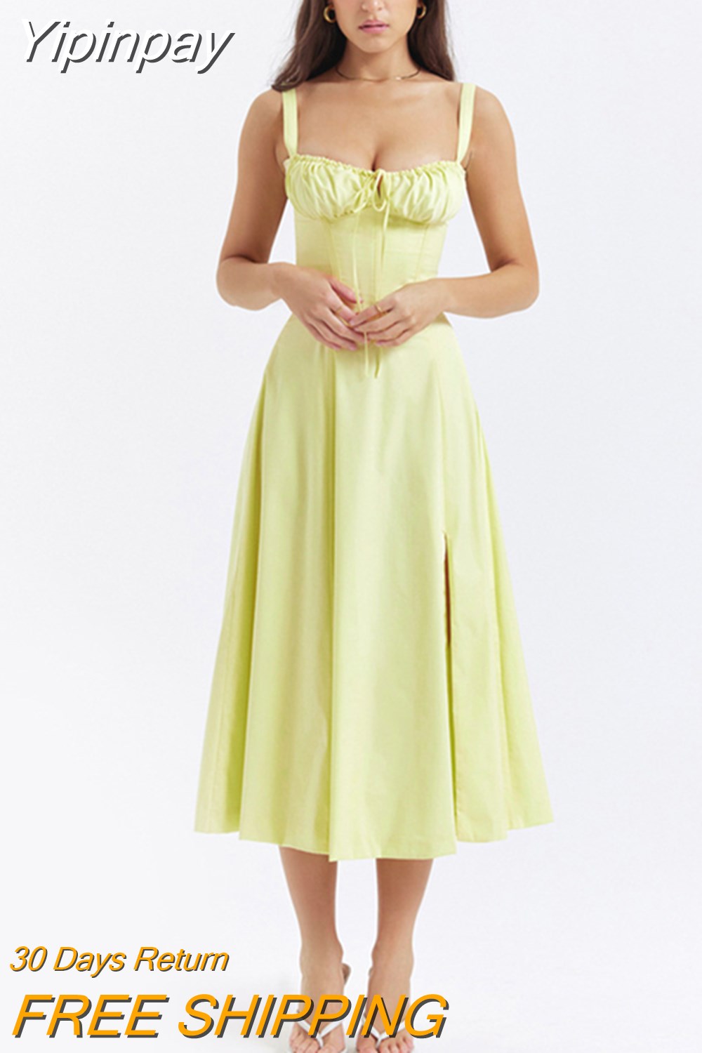 Yipinpay Elegant A Line Midi Dress Sexy Spaghetti Strap Lace Up Red Holiday Party Dresses Split Summer Dresses Women 2023