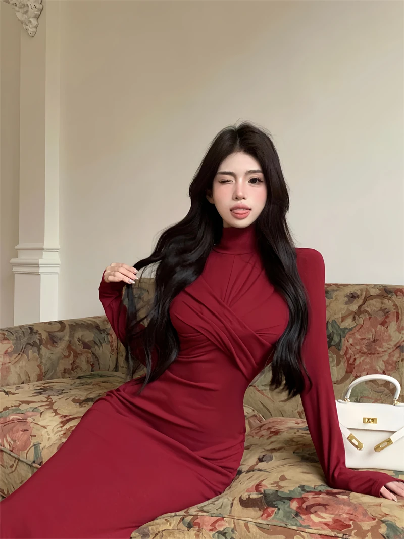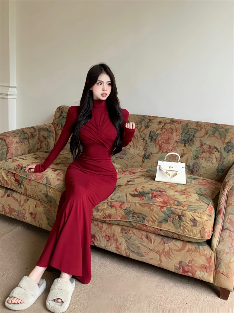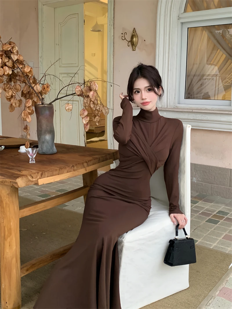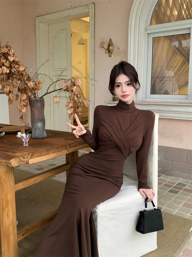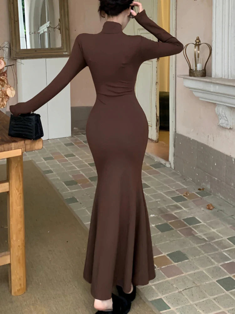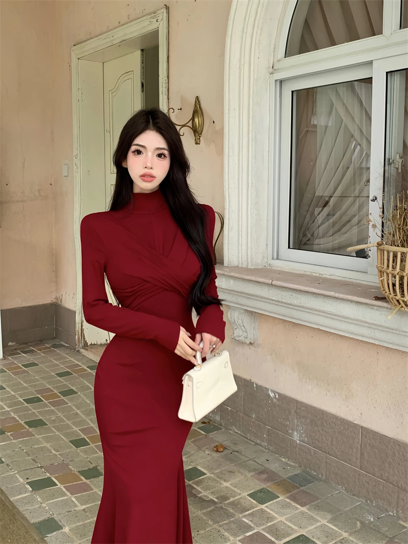 Yipinpay Elegant Black Mermaid Dress Women Casual Chic Long Sleeve Sexy Evening Party Dress French Vintage Pretty Long Dress 2023