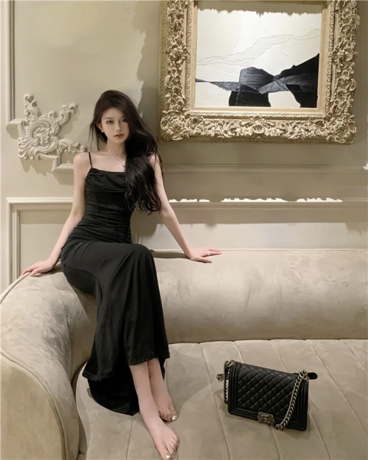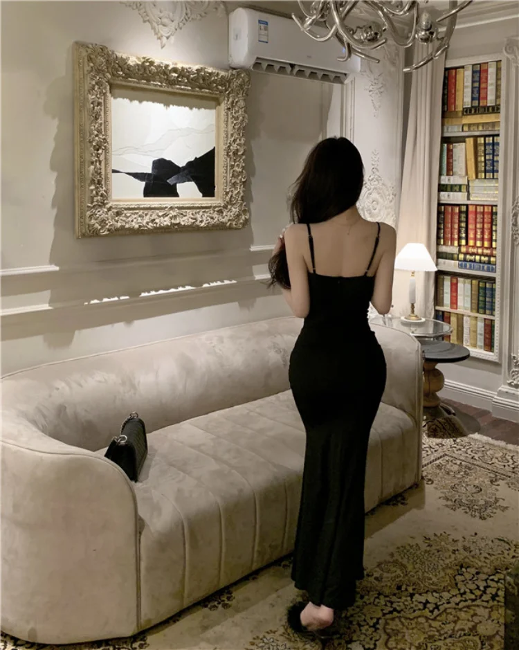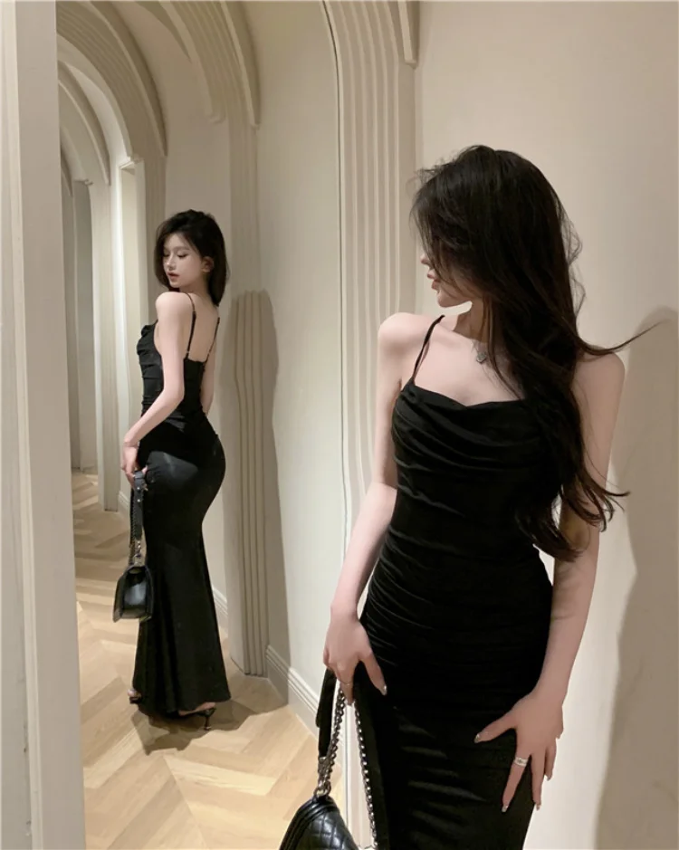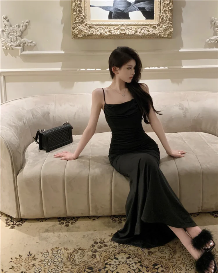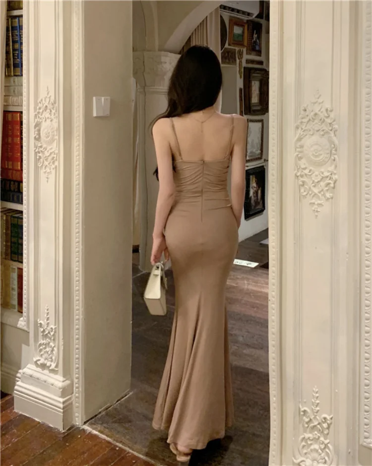 Yipinpay Elegant Dresses Women Party Sleeveless Slash Neck French Style Chic Mermaid Dress Ladies Solid Stretch Sexy Temperament