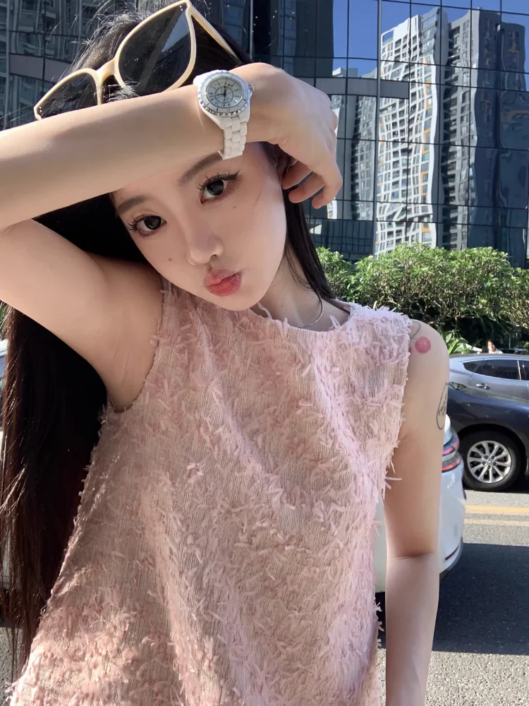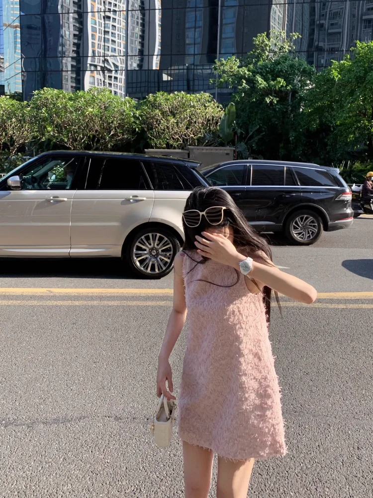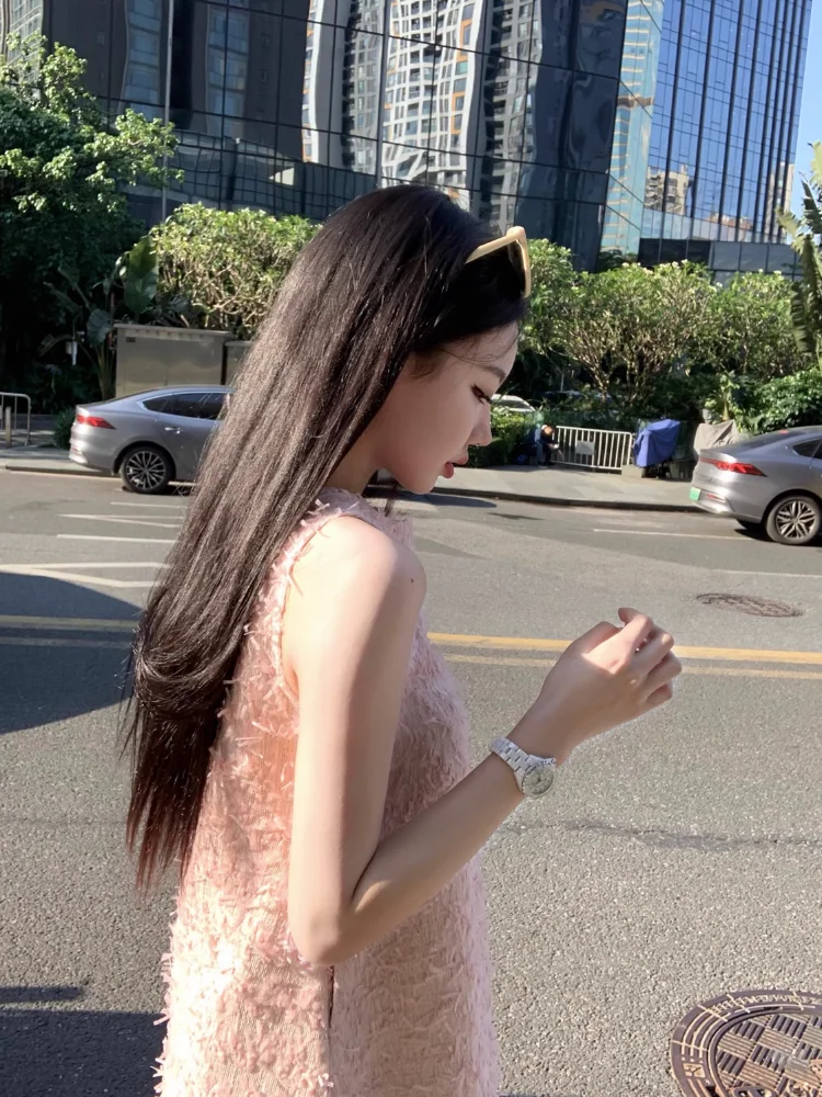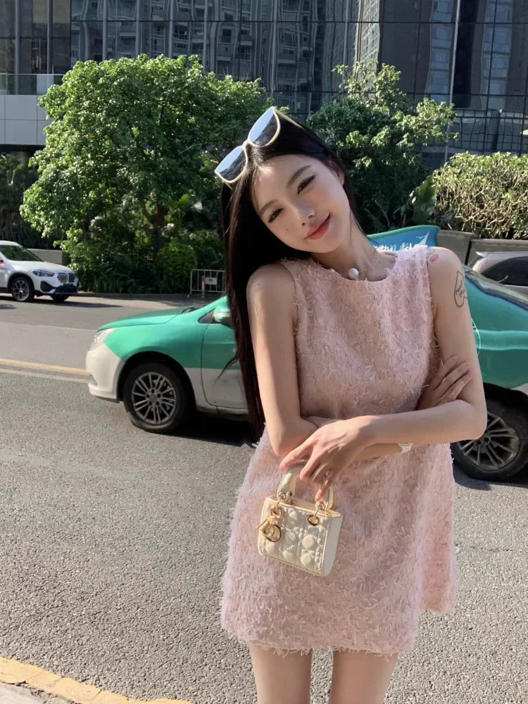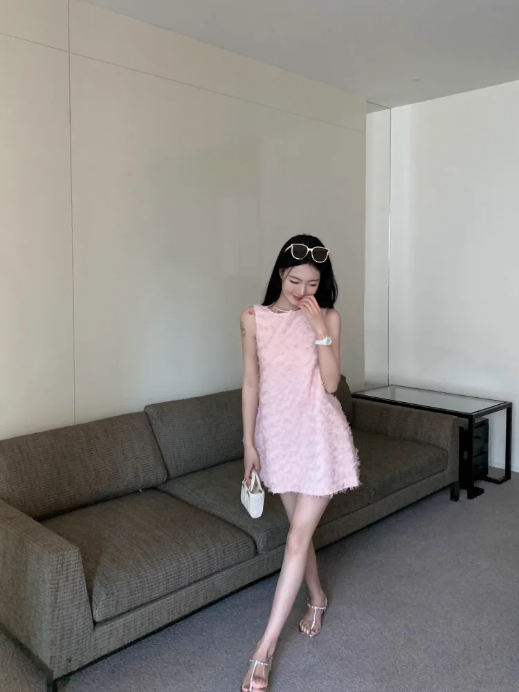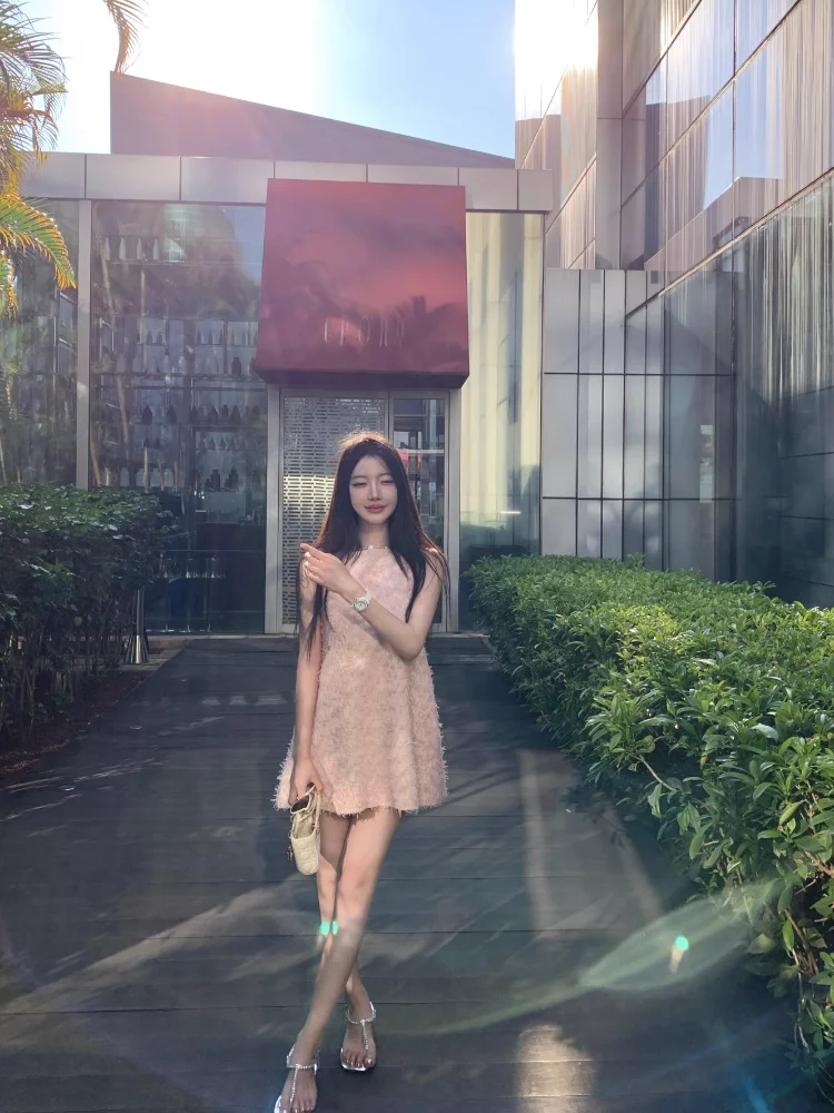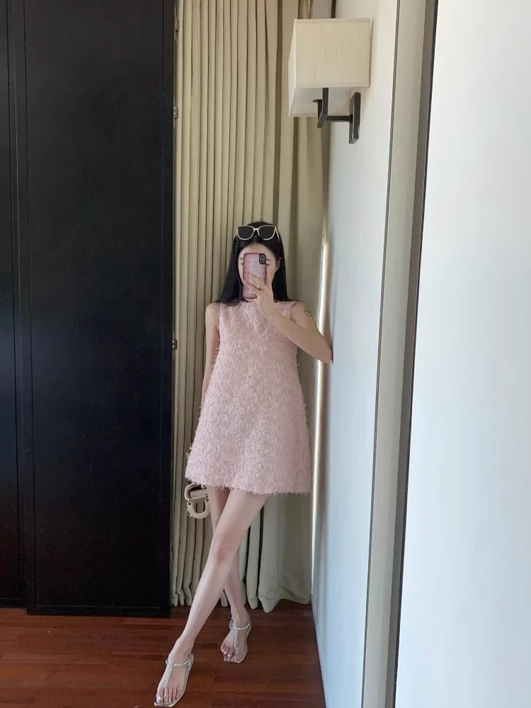 Yipinpay Elegant Dresses Women Sweet Sleeveless O Neck Pink Summer New Patchwork Loose Mini Dress Sexy Ladies Fashion