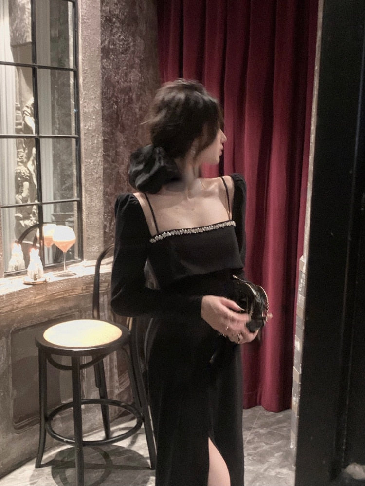 Yipinpay Elegant Evening Party Dress Woman Vintage Black Midi Dress Long Sleeve Casual Slim Dress Korean Fashion 2023 Autumn Chic