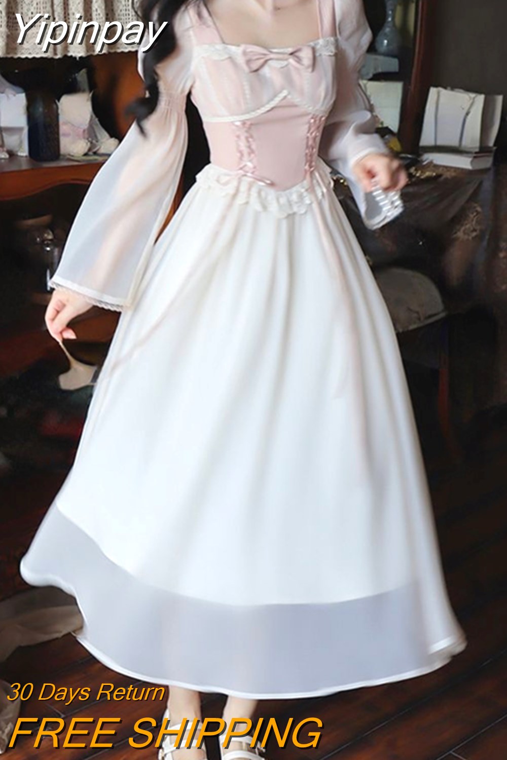 Yipinpay Elegant Office Lady Dress Party 2023 Summer Chiffon One Piece Dress Korean Fashion Casual Long Sleeve Midi Dress Woman