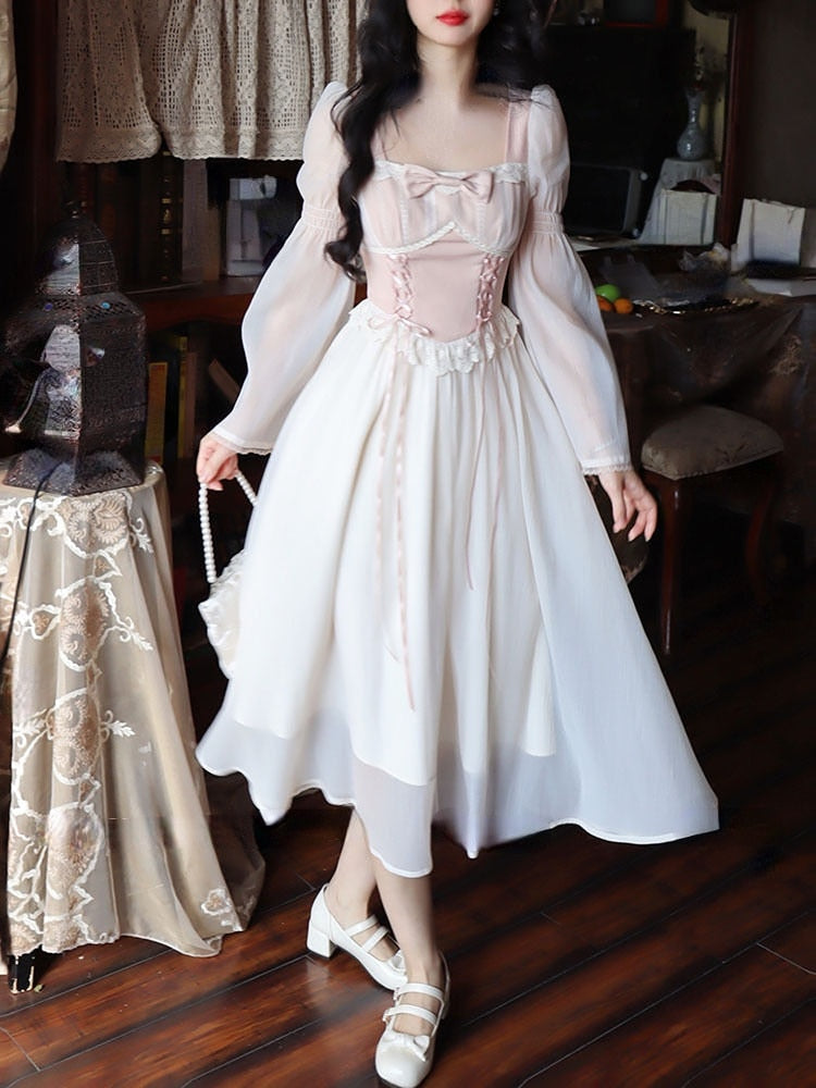 Yipinpay Elegant Office Lady Dress Party 2023 Summer Chiffon One Piece Dress Korean Fashion Casual Long Sleeve Midi Dress Woman