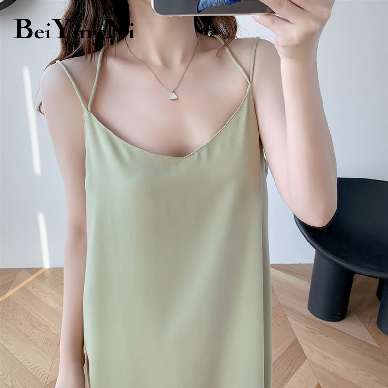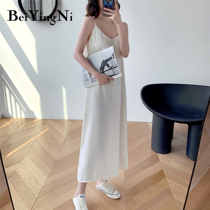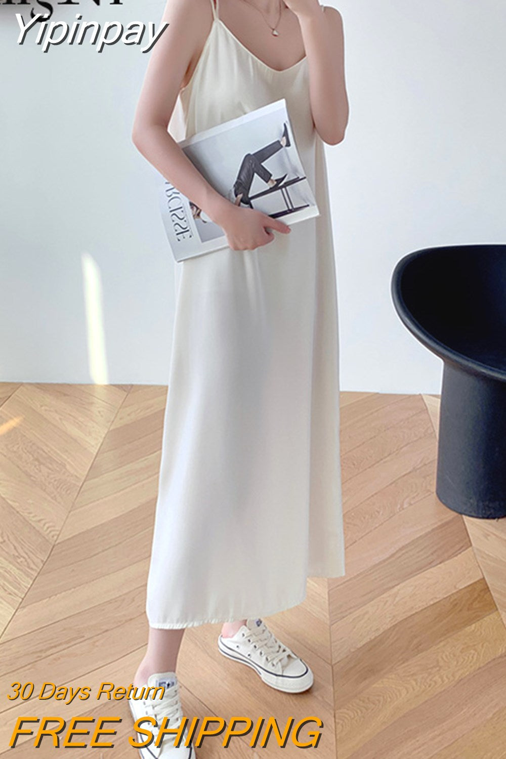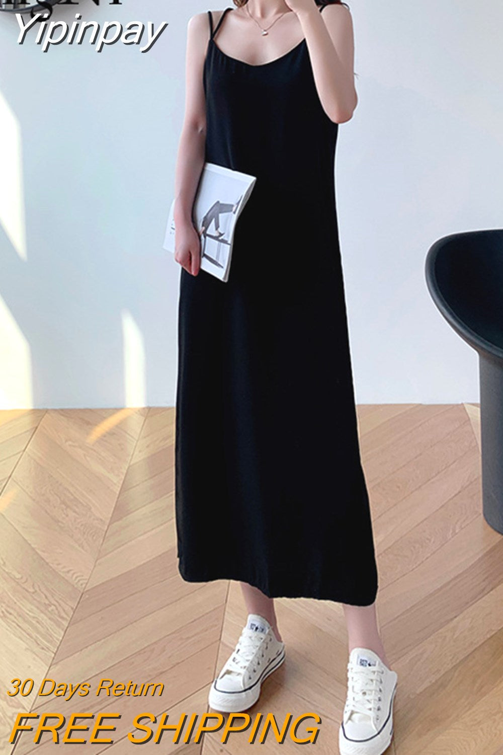 Yipinpay Elegant Oversized Long Dress Women Plain Sleeveless Casual Vintage Long Midi Straps Dresses Chic Luxury Vestidos Mujer